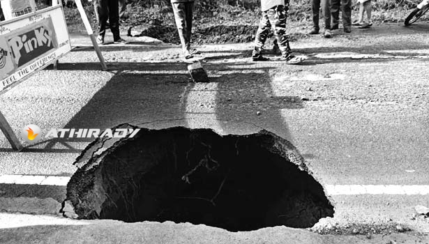 பொள்ளாச்சி-வால்பாறை சாலையில் திடீர் பள்ளம் – வாகன போக்குவரத்து நிறுத்தம்…!!