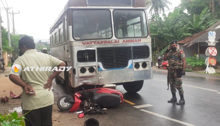 தாவடி சந்தியில் இலக்கத் தகடு அற்ற பேரூந்து மோதியதில் பாடசாலை மாணவி உட்பட இருவர் படுகாயம்!! (வீடியோ, படங்கள்)