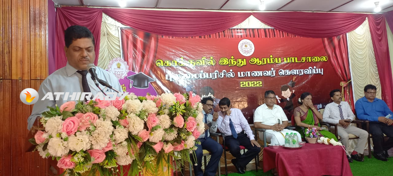 தேசிய ரீதியில் தமிழ் மொழியில் முதலாம் இடத்தினை வடக்கு மாகாணத்தைச் சேர்ந்த கொக்குவில் இந்து ஆரம்ப பாடசாலையின் மாணவர் பெற்றிருந்த நிலையில் கொக்குவில் இந்து ஆரம்ப பாடசாலை நிர்வாகத்தினரின் ஏற்பாட்டில் 2022 புலமைப் பரிசில் பரீட்சையில் சித்தியடைந்த மாணவர்களை கௌரவிக்கும் நிகழ்வு இன்றைய தினம் கொக்குவில் இந்து ஆரம்ப பாடசாலையின் ஒன்றுகூடல் மண்டபத்தில் இடம்பெற்றது