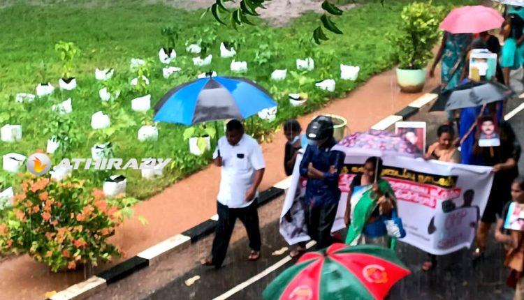 யாழ்ப்பாணம் மாவட்ட செயலகத்தில் நீதி மற்றும் சிறைச்சாலைகள் அலுவல்கள் மற்றும் அரசியலமைப்பு மறுசீரமைப்பு அமைச்சின் ஒழுங்கமைப்பில் இன்றைய தினம் திங்கட்கிழமை நடமாடும் சேவை நடைபெற்ற நிலையில் காணாமல் ஆக்கப்பட்டவர்களின் உறவினர்கள் போராட்டத்தில் ஈடுபட்டனர்.