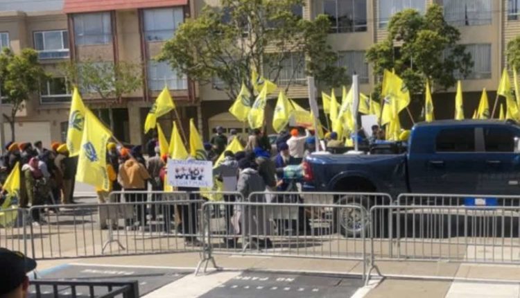 சுமார் 2 ஆயிரம் போராட்டக்காரர்கள் திரண்டனர். அவர்கள் தடுப்புகளை உடைக்க முயன்றனர். அப்போது போலீசார் மீது தண்ணீர் பாட்டில்கள், மை மற்றும் வண்ண பொடிகளை வீசினர் என்றனர். இந்திய தூதரகத்தில் தேசியக் கொடியை காலிஸ்தான் ஆதரவாளர்கள் அகற்றியதற்கு பதிலடி கொடுக்கும் வகையில் தூதரக கட்டிடம் முன்பு பெரிய அளவில் தேசிய கொடி பறக்கவிடப்பட்டு இருக்கிறது.