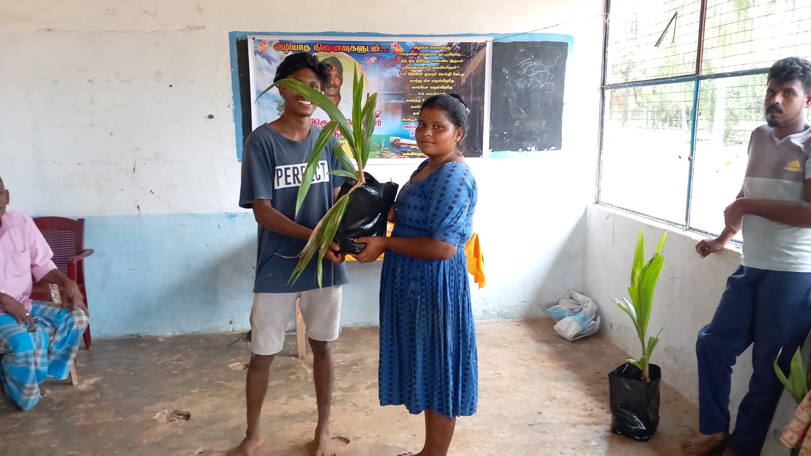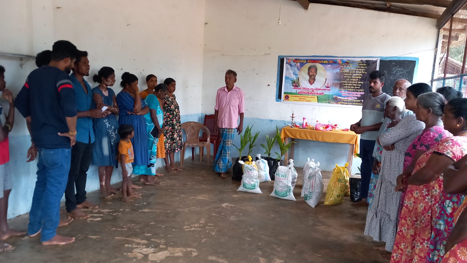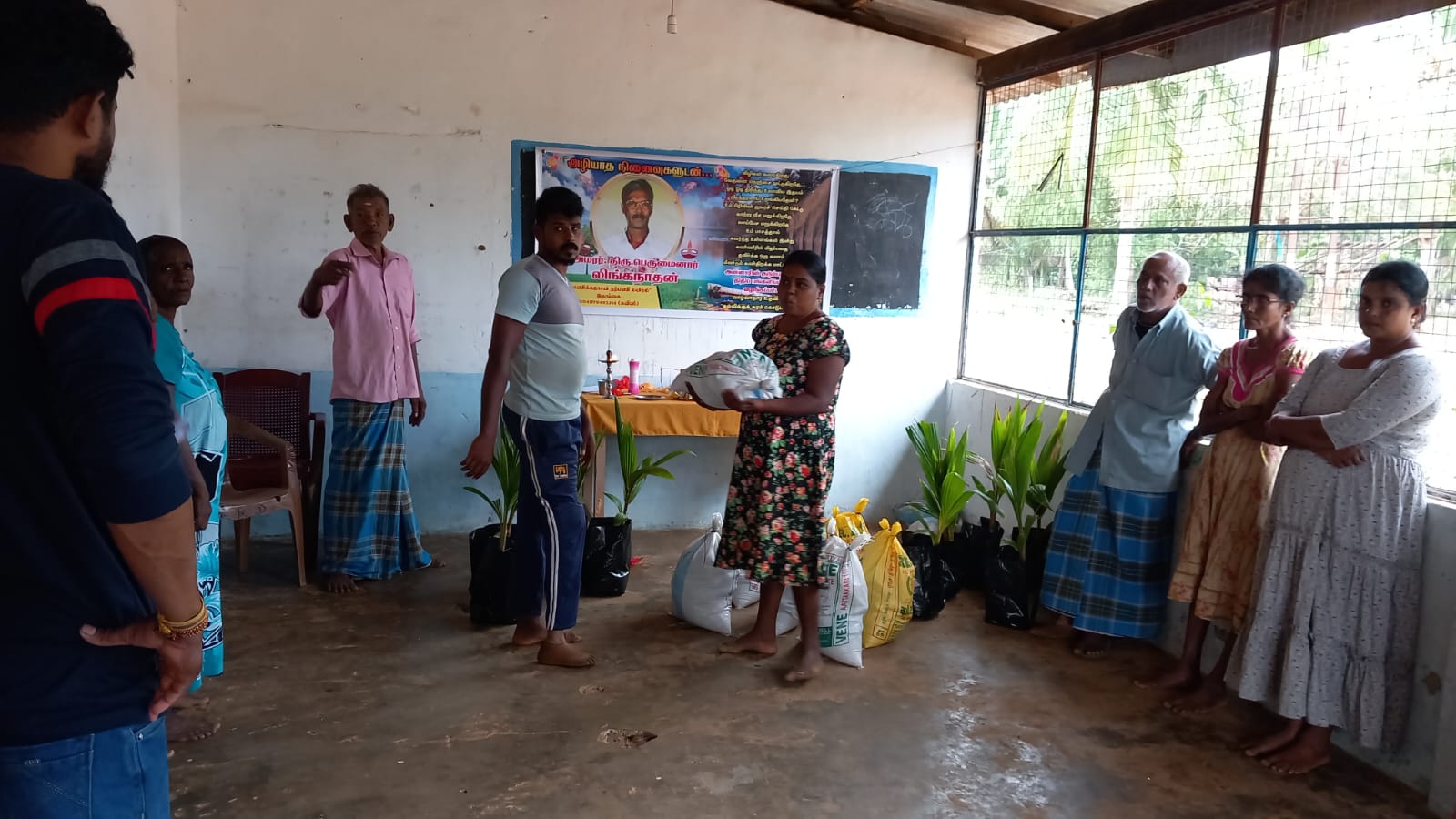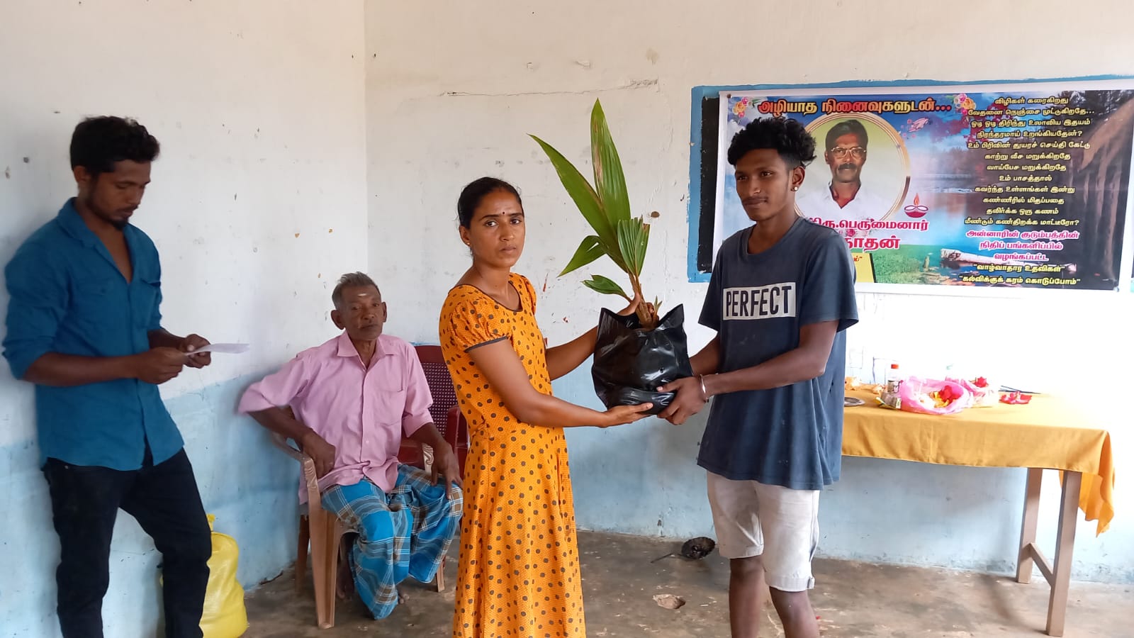 அதனைத் தொடர்ந்து மேற்படி பெறுமதியான உலருணவுப் பொருட்கள் அடங்கிய பொதிகள் வழங்கி வைக்கப்பட்ட மற்றும் அன்னாரின் நினைவாக பயன்தரு நல்லின தென்னைமரக் கன்றுகளும் வழங்கி வைக்கப்பட்ட நிகழ்வானது அமரர் பெருமைனார் லிங்கநாதன் அவர்களின் மனைவி மக்கள், மருமக்கள், பேரப்பிள்ளைகள் மற்றும் உற்றார், உறவினர்கள் சார்பாக அன்னாரின் மகனான பிரான்சில் வசிக்கும் திரு.தயாளன் அவர்களின் முழுமையான நிதிப் பங்களிப்பில் வழங்கப்பட்டது. மேற்படி தயாளன் கழகத்தின் பிரான்ஸ் கிளையின் நிர்வாகப் பொறுப்பாளர் என்பது குறிப்பிடத்தக்கது.