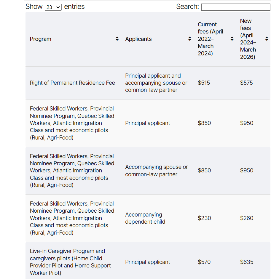 பெடரல் திறன்மிகுப் பணியாளர்கள், மாகாண நாமினி திட்டம், கியூபெக் திறன்மிகுப் பணியாளர் திட்டம், அட்லாண்டிக் புலம்பெயர்தல் வகுப்பு முதலான திட்டங்களுக்கு விண்ணப்பிப்பவருக்கான கட்டணம் 850 டொலர்களிலிருந்து 950 டொலர்களாகவும், விண்ணப்பிப்பவரின் கணவன் அல்லது மனைவிக்கான கட்டணம் 850 டொலர்களிலிருந்து 950 டொலர்களாகவும் அதிகரிக்க உள்ளது.