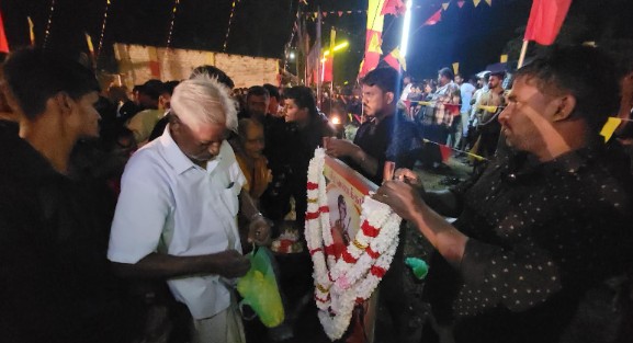 பொதுச்சுடரை மூன்று மாவீர்ர்களின் தந்தை கந்தசாமி ஏற்றி வைத்தார்.