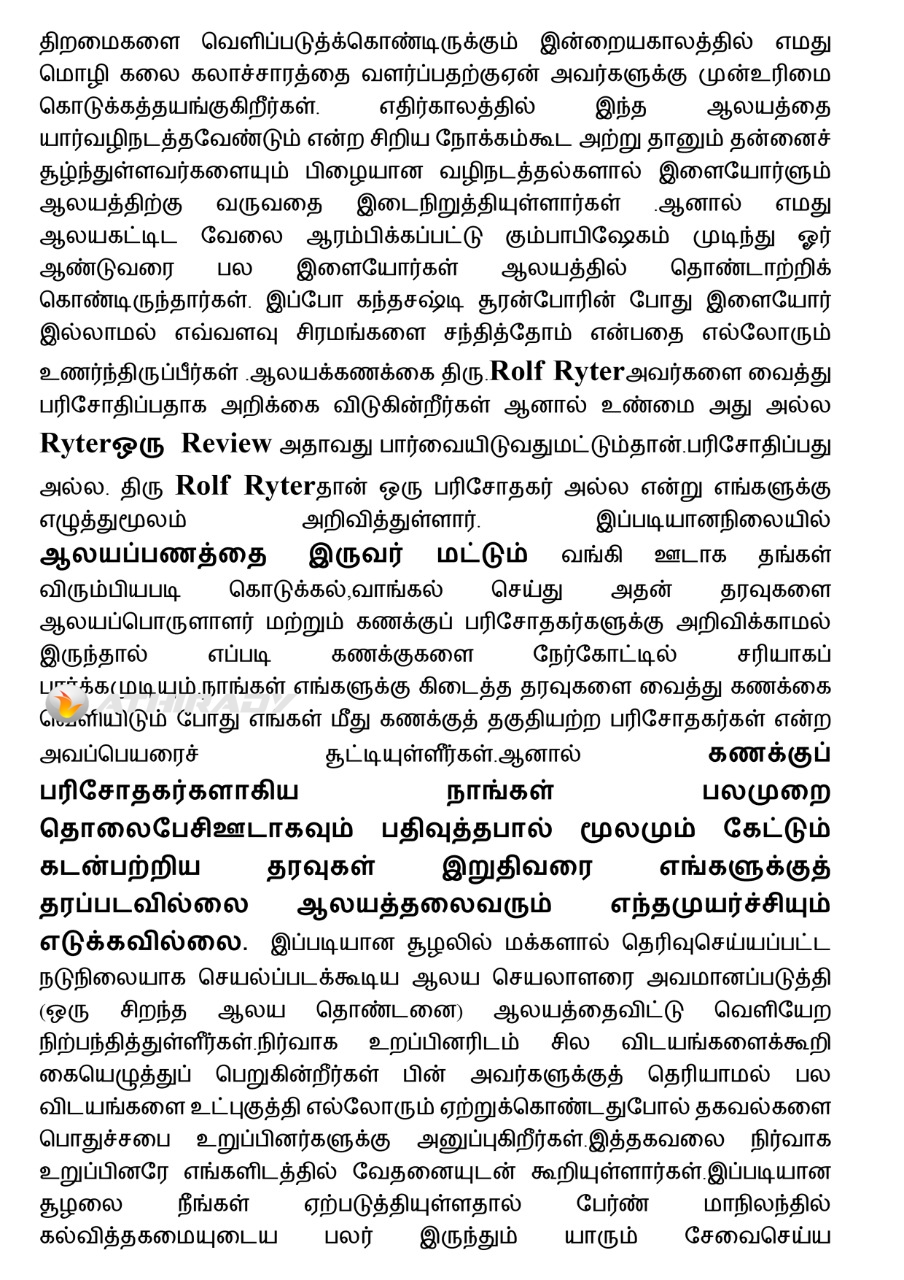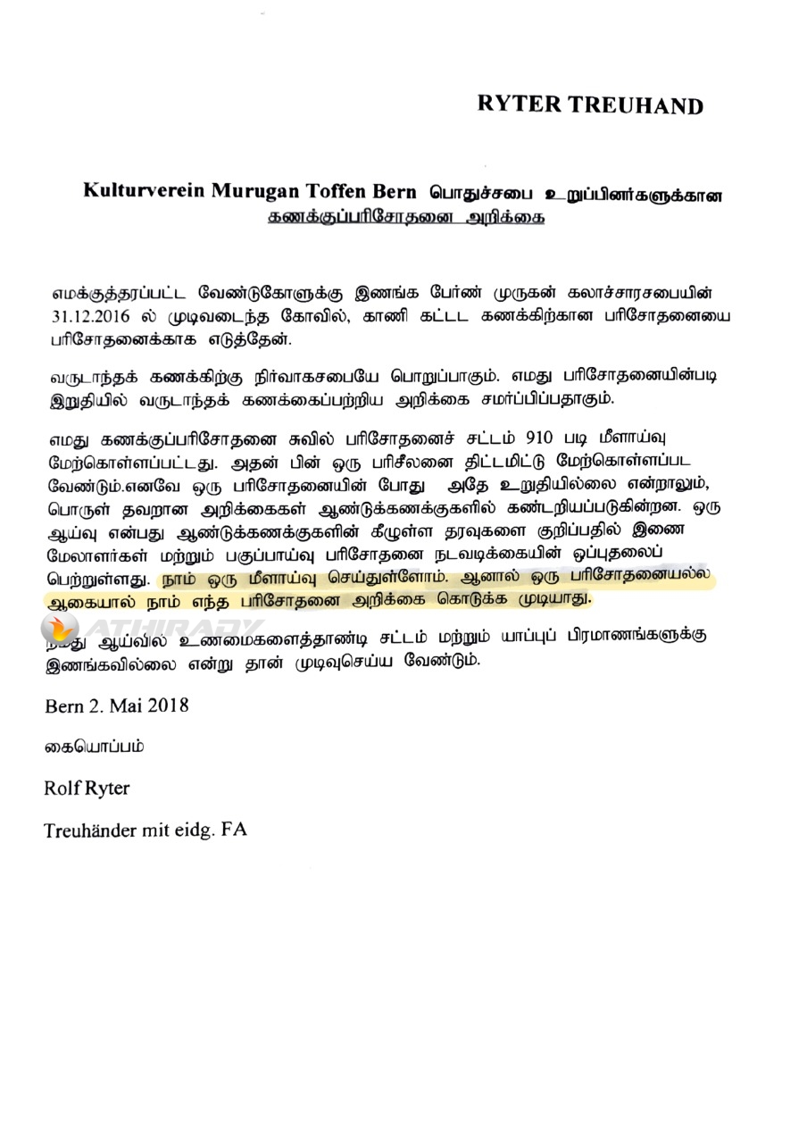 சுவிஸ் பேர்ண் முருகன் ஆலயத்தில் மீண்டும் வெடிக்கும் சர்ச்சை.. முன்னாள் கணக்காய்வாளர் விடுத்துள்ள அறிக்கை.. (படங்கள்)