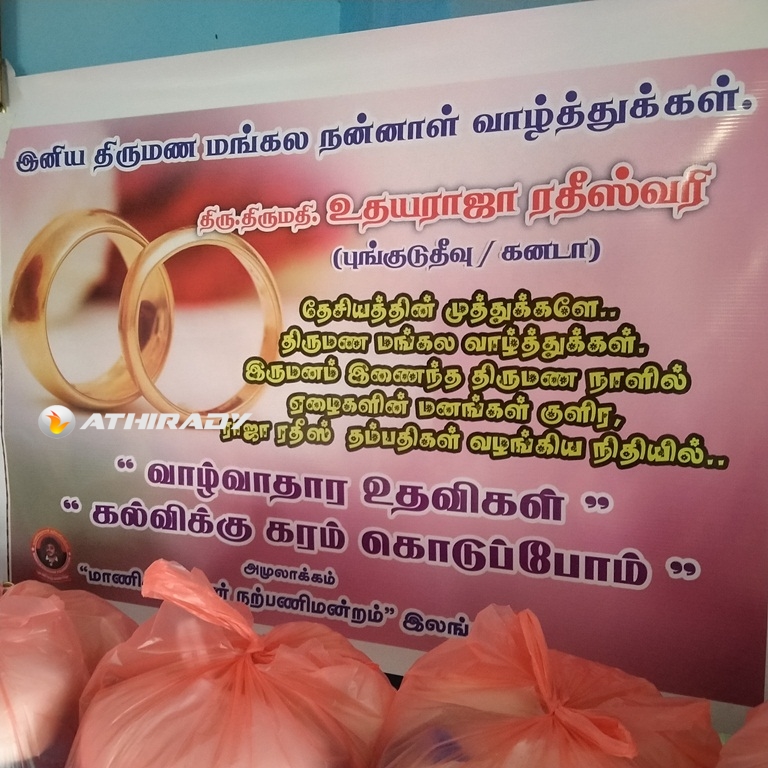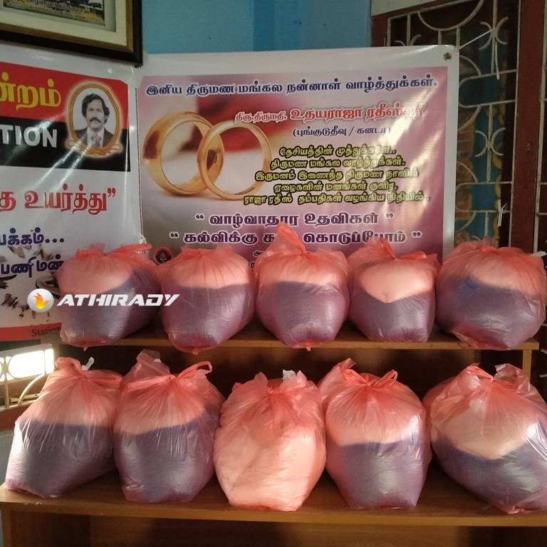 குறிப்பாக நிரந்தர தொழில் இல்லாமலும், வீட்டு வசதி இல்லாமலும், பலவிதமான இன்னல்களுக்கு மத்தியில் வாழும் இவர்களை இனங்கண்டு இவர்களுக்கு “ராஜா ரதீஸ் தம்பதிகளின்” திருமண நாளன்று பெறுமதியான உலருணவுப் பொதிகள் வழங்கப்பட்டது..