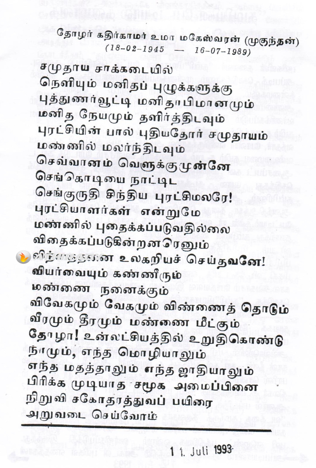 தோழர் கதிர்காமர் உமா மகேஸ்வரன் (முகுந்தன்)