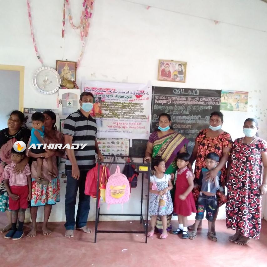 தொடர்ந்து முன்பள்ளி ஆசிரியை கேட்டுக் கொண்டபடி மாணவர்களின் புத்தகப்பை மற்றும் தண்ணீர்ப் போத்தல்களை கொழுவி பாதுகாப்பாக வைத்திருக்கும் இரும்பிலான, நிலையான கொளுக்கி வசதி கொண்ட றாக்கையை (ஸ்ராண்ட்) கற்குழி ஸ்ரீ முத்துமாரி அம்மன் அறங்காவல்சபையின் தலைவர் திரு முருகையா விஜிகரன் அவர்களால், கற்குழி சமுர்த்தி சங்கத்தின் செயலாளர் திருமதி வின்சன் மேரி அவர்கள் மற்றும் வருகை தந்த பாலர் பாடசாலை மாணவர்களின் பெற்றோர்களின் முன்னிலையில் மாணவர்கள் சூழ முன்பள்ளி ஆசிரியை திருமதி இராஜேந்திரன் கோகிலராணி அவர்களிடம் கையளிக்கப்பட்டது.