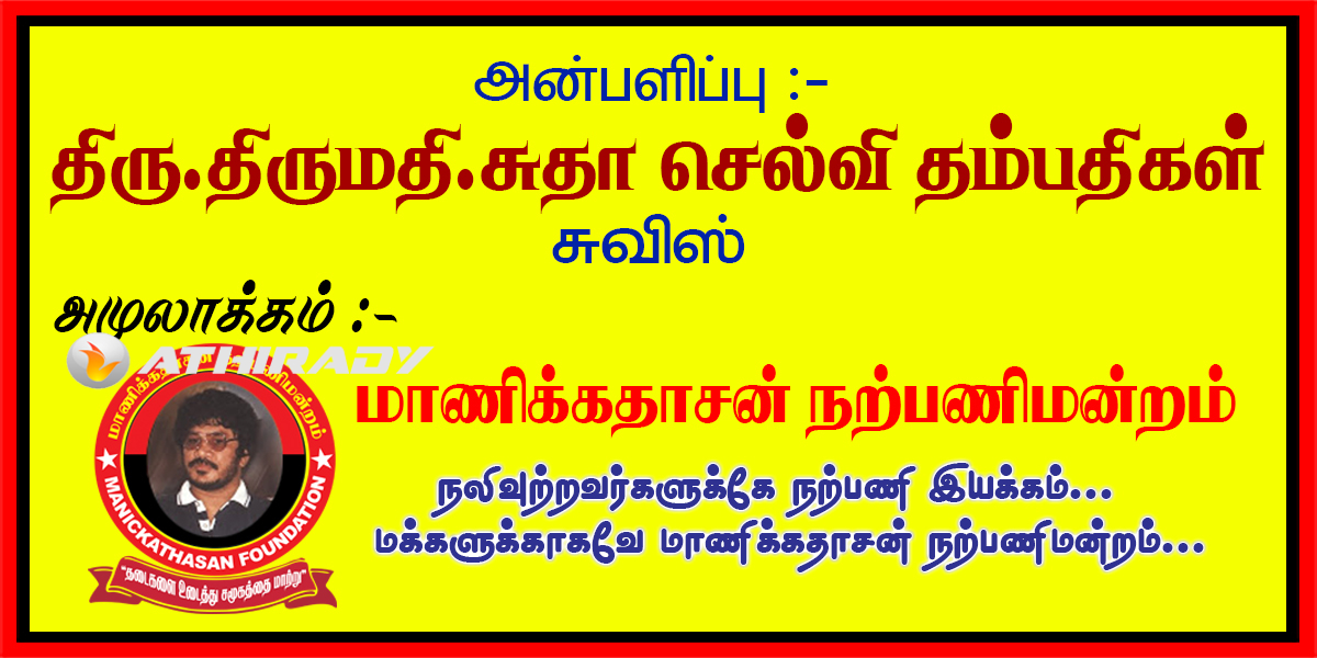 “ஆனால் மாணிக்கதாசன் நற்பணி மன்றத்திடம் இந்த உதவி கேட்டு, இரண்டே நாட்களில் சுவிலில் வசிக்கும் திரு.திருமதி சுதா செல்வி அவர்களது திருமண நாள் பங்களிப்பில் செய்து தந்துள்ளார்கள். இதனை ஏற்பாடு செய்து தந்த “மாணிக்கதாசன் நற்பணி மன்றத்துக்கும்”, இதுக்குரிய நிதி உதவியளித்த சுவிஸ் வாழ் “சுதா,செல்வி” தம்பதிகளுக்கும் பிள்ளைகள் மற்றும் பெற்றோர்கள் சார்பில் நன்றிகளைத் தெரிவித்துக் கொள்கிறேன்” என்றார்.