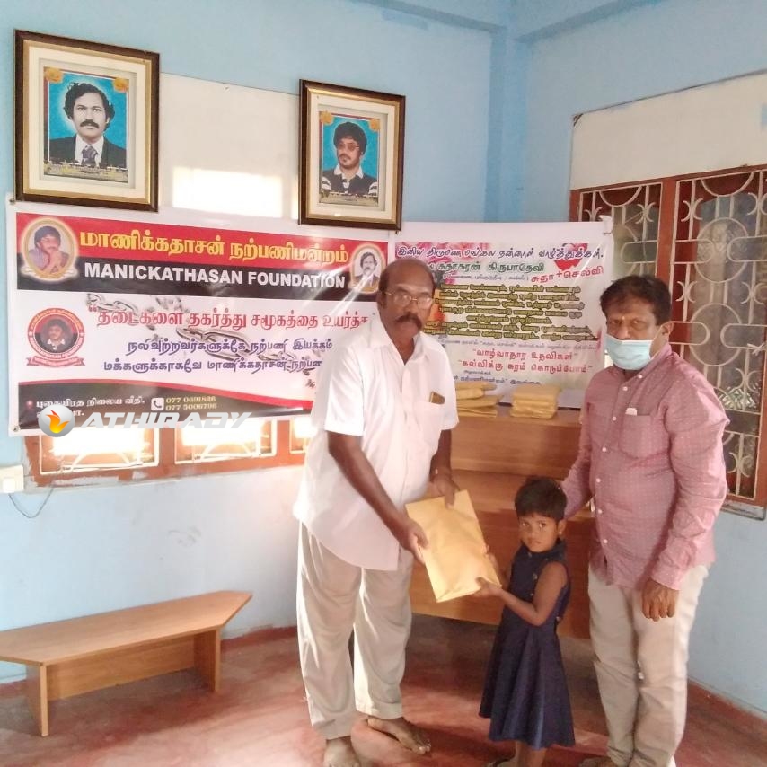 அதனைத் தொடர்ந்து.. வீட்டு வறுமையினால் கற்றல் செயற்பாடுகளில் பல சவால்களை எதிர்கொள்ளும் மாணவர்களுக்கான கற்றல் உபகரணங்கள் வழங்கப்பட்டது. தந்தை இல்லாது தாயின் அன்றாட கூலித் தொழிலில் வாழும் குடும்பங்கள், தந்தையும் தாயும் பேச முடியாத விசேட தேவையுடைய குடும்பம், தந்தை தாய் பிரிந்து வாழ்வதால் இடர்களை எதிர்கொள்ளும் பிள்ளைகள், வறியநிலையில் வாழும் குடும்பத்தில் உள்ள பிள்ளைகள் என பலதரப்பட்ட, ஏதோ ஒரு வழியில் பாதிக்கப்பட்ட குடும்பங்களில் இருந்து தெரிவு செய்யப்பட்ட மாணவர்களுக்கு “உலகப்புகழ் ஆன்மீகப் பேச்சாளரும், சைவ சமய சொற்பொழிவாளருமான” காரையின் புதல்வன் தமிழருவி என ஒற்றைச் சொல்லில் உலகப் புகழ் பெற்ற திரு த. சிவகுமாரன் ஐயா அவர்களின் திருக் கரங்களினால் மாணவர்களுக்கு வழங்கப்பட்டது.