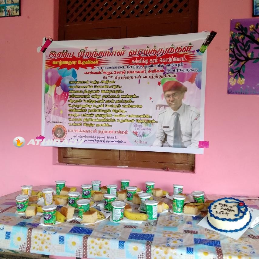 சரவனை மேற்கு வேலணையைச் சேர்ந்தவரும், சுவிஸ் சார்கன்ஸ் பகுதியில் வசிப்பவருமான தோழர் மோகன் என அழைக்கப்படும் பற்பநாதன் அருட்சோதி தம்பதிகளின் செல்வப் புதல்வன் அஜீகன் தனது இருபத்தோராவது பிறந்த தினத்தை தனது தாயகப் பகுதிகளில் பல்வேறு சமுகப் பங்களிப்புகள் மூலம் இன்றையதினம் கொண்டாடினார்.