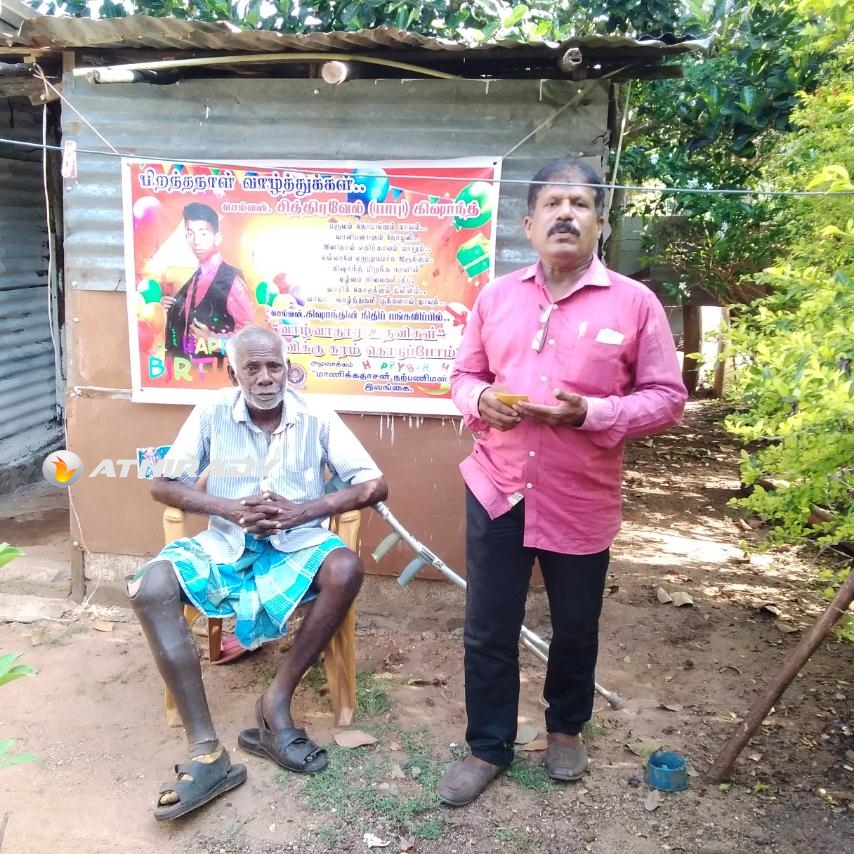 யாழ். சரவணையைச் சேர்ந்தவர்களும் தற்போது சுவிஸ் நாட்டின் சூரிச் நகரில் வசிப்பவர்களும் புளொட் தோழருமான் பாபு என எல்லோராலும் அழைக்கப்படும் சித்திரவேல் ஹேமா தம்பதிகளின் ஏகபுத்திரன் கிஷாந்த் அவர்களின் பதினெட்டாவது பிறந்தநாளை முன்னிட்டு பெற்றோர்களின் நிதிப்பங்களிப்பில் வவுனியா பம்பைமடு கிராமசேவையாளர் பிரிவில் புதிய கற்பகபுரத்தில் வசிக்கும் சாமி அப்பா என எல்லோராலும் அழைக்கப்படும் சிங்கராசா சாமிநாதன் என்பவரது இடது ஜெய்ப்பூர்கால் தற்போது பழுதடைந்து இருப்பதால் அதனை மாற்றம் செய்வதற்கு மாங்குளம் உயிரிழை அலுவலகத்திற்கு சென்று வருவதற்கான முச்சக்கர வண்டிக்கான செலவினை கிஷாந்த் அவர்கள் தனது பிறந்த நாள் பரிசாக மாணிக்கதாசன் நற்பணி மன்றமூடாக வழங்கி வைத்தார்.