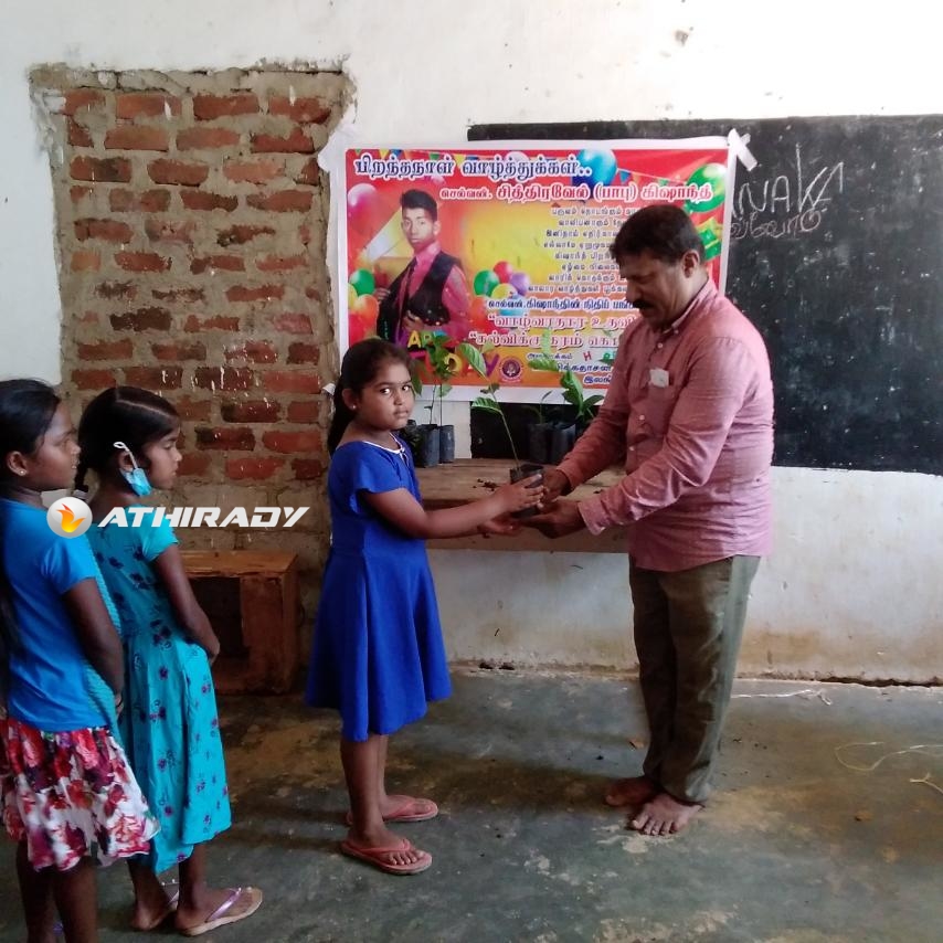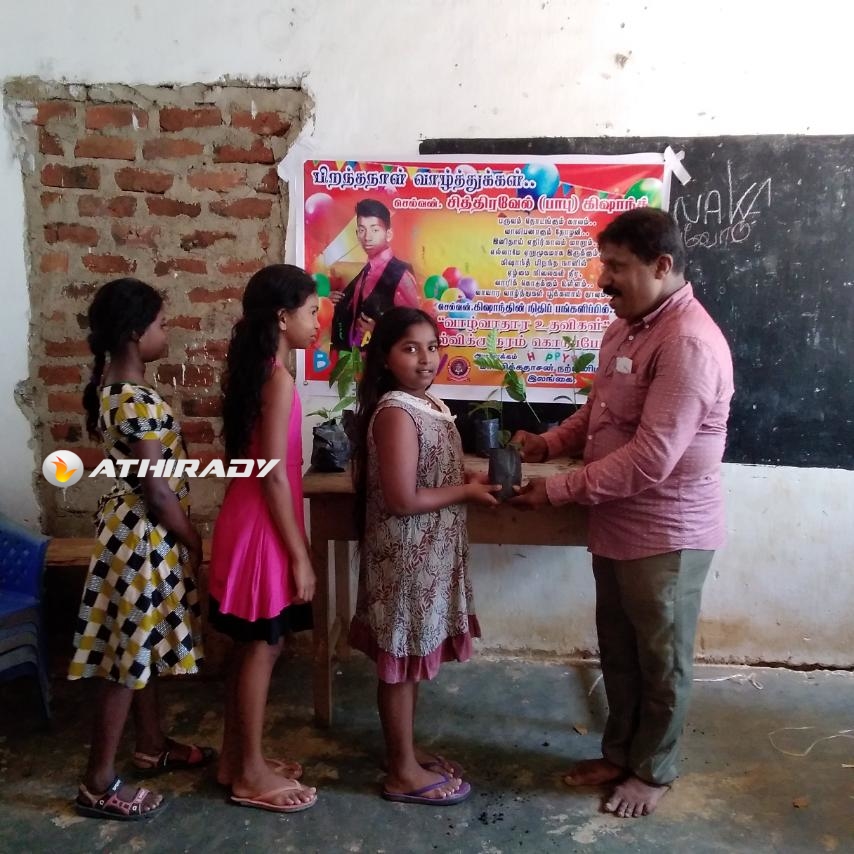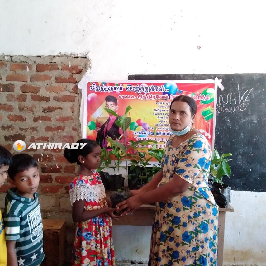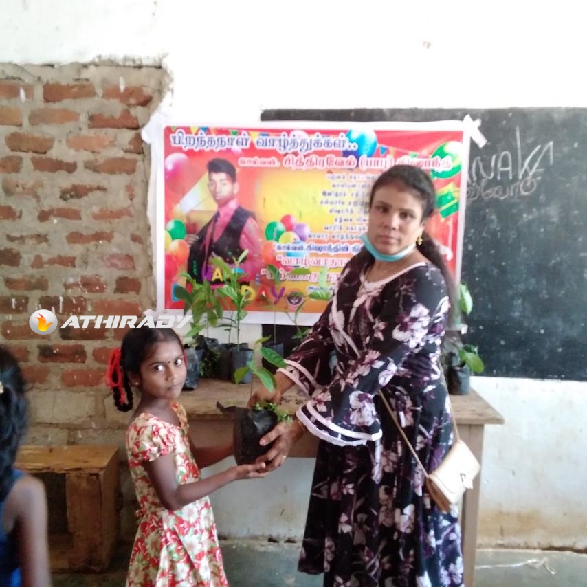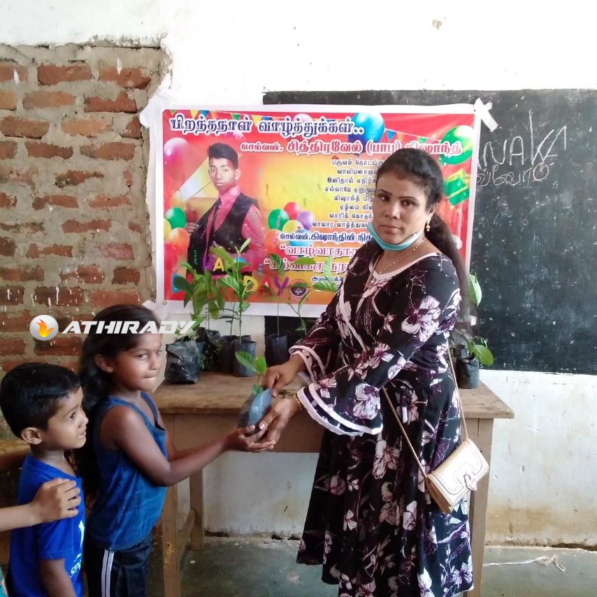 வெறுமனே களியாட்ட நிகழ்வாக கிஷாந்த அவர்களுடைய பிறந்தநாளைக் கொண்டாடாமல் சுவிசில் பிறந்து வளர்ந்த கிஷாந்த் தன்னுடைய பூர்வீகத்தின் சொந்தங்களுக்கு தனது பிறந்தநாள் பரிசாக் நல்லின பழமரக் கன்றுகளை வழங்கி ஒவ்வொறு மாணவரும் எதிர்காலத்தில் நற்கனி கொடுக்கும் மாணவர்களாக நல்ல மனிதர்களாகவாழ வளர வேண்டுமென வாழ்த்தி வணங்கினார்.