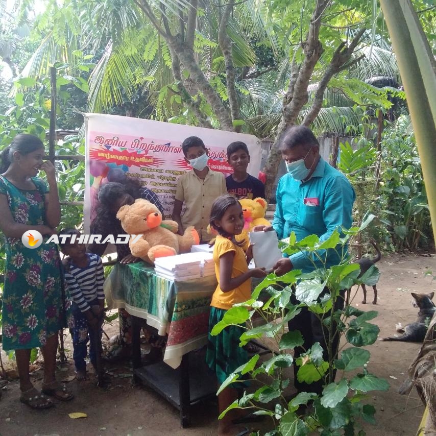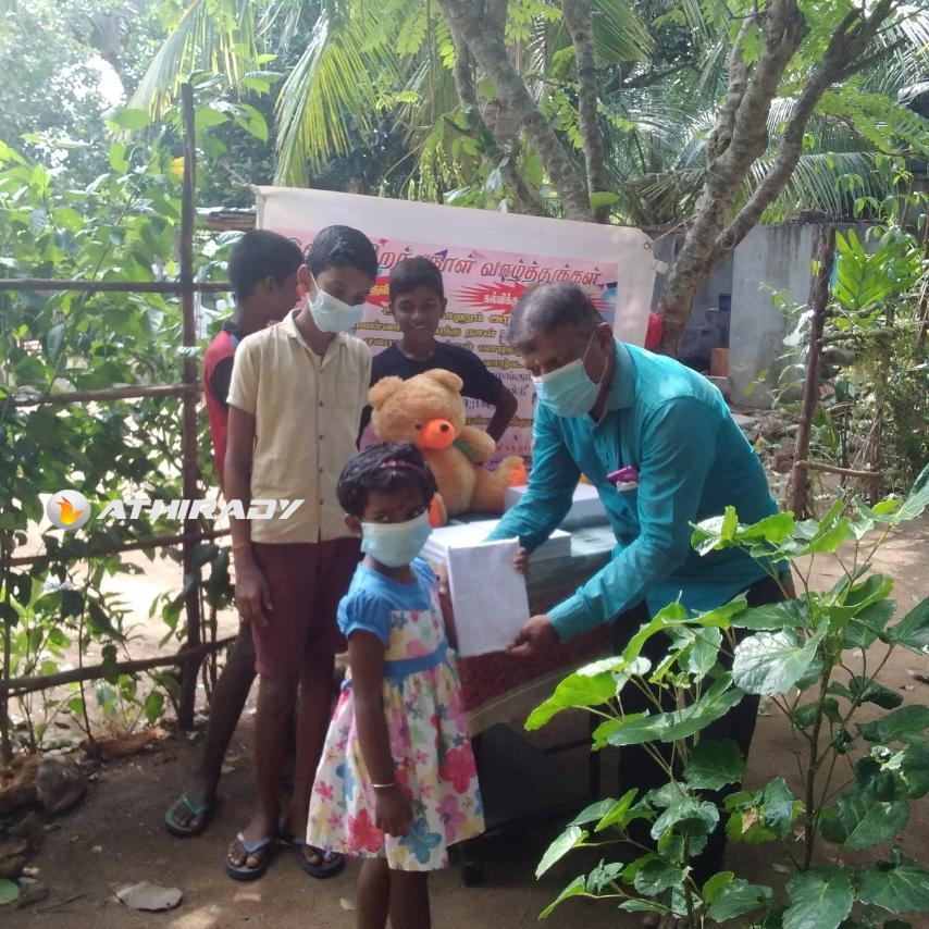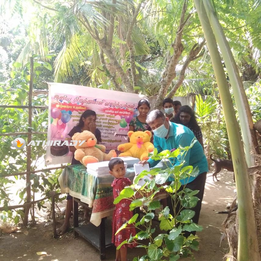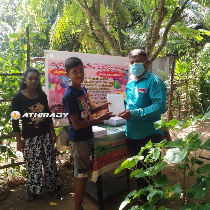 தனது பிறந்த நாளில் பலதரப்பட்ட சமூகப்பங்களிப்பை தமது தாயக உறவுகளுக்கு வழங்க விரும்பிய திருமதி தாரணி அவர்கள் தனது பிறந்தநாள் நிகழ்வில் கலந்து கொண்டு சிறப்பான பிறந்த நாளாக மாற்றிய சிறுவர்களுக்கு கற்றல் உபகரணங்கள் வழங்கும்படி கேட்டுக் கொண்டதன்படி அனைத்து மாணவர்களுக்கும் கற்றல் உபகரணங்கள் அடங்கிய பொதி வழங்கி வைக்கப்பட்டது.