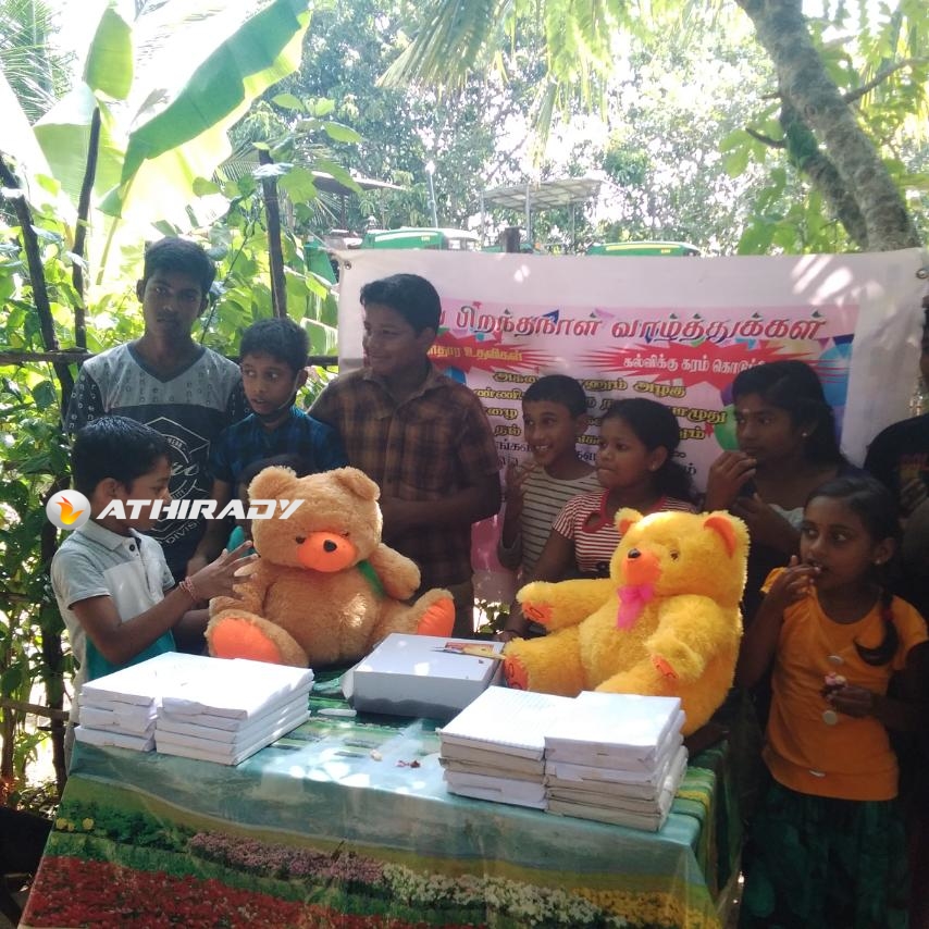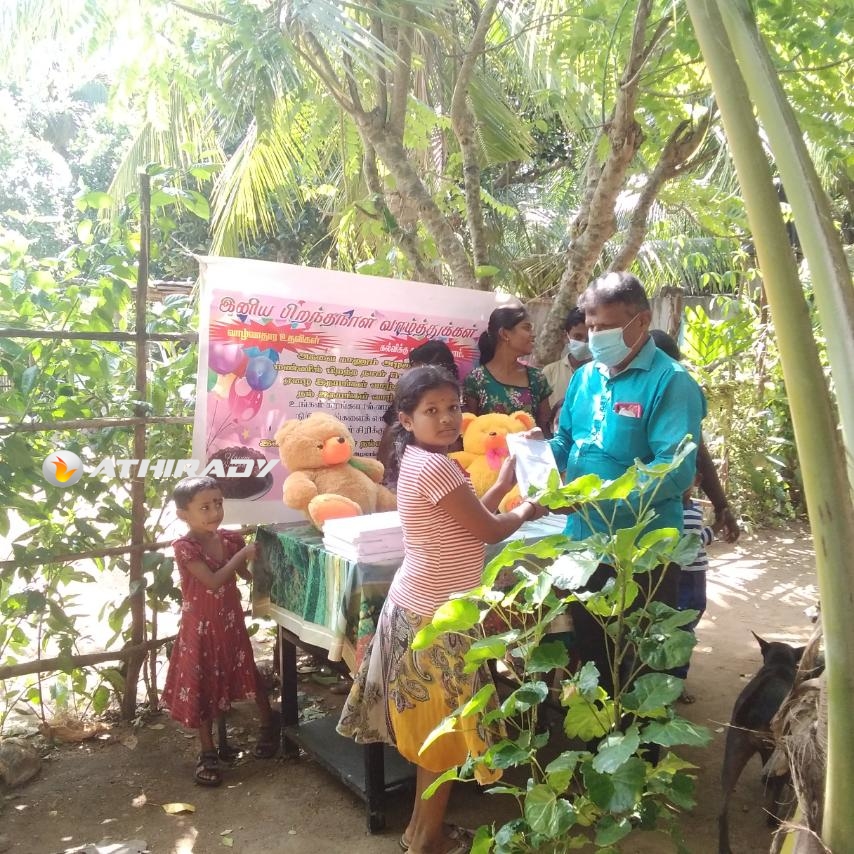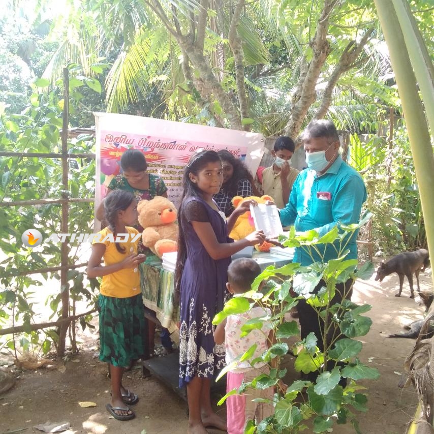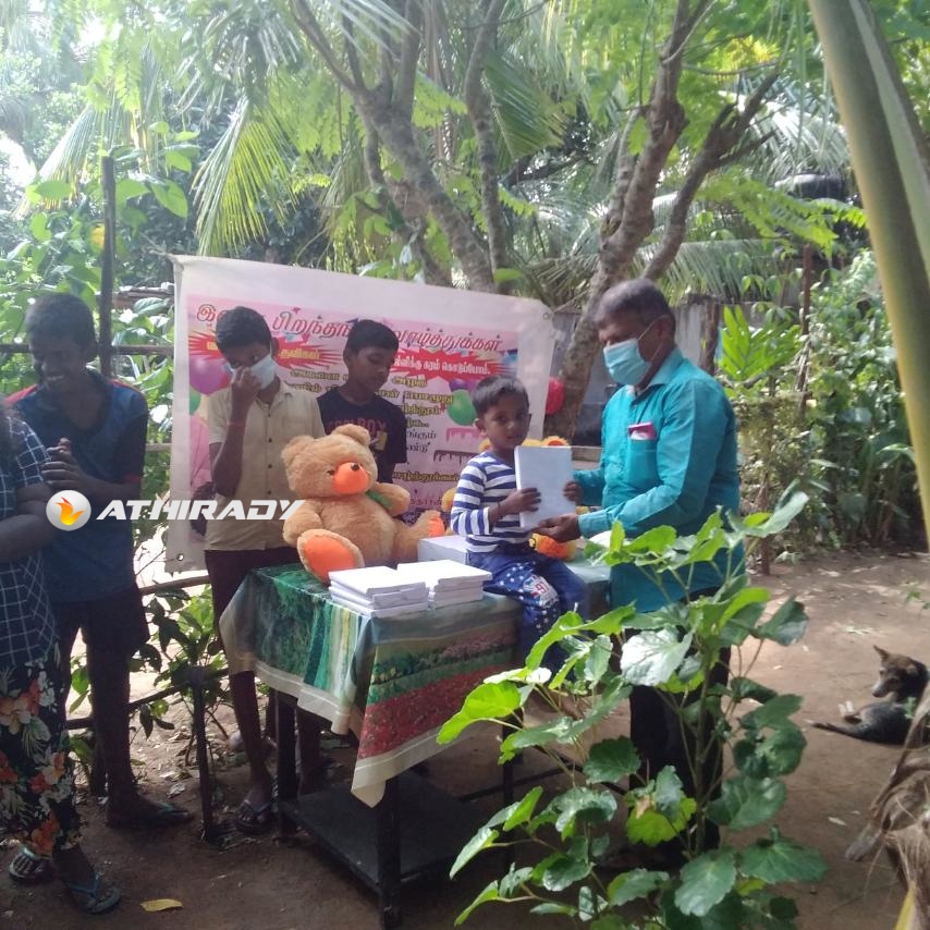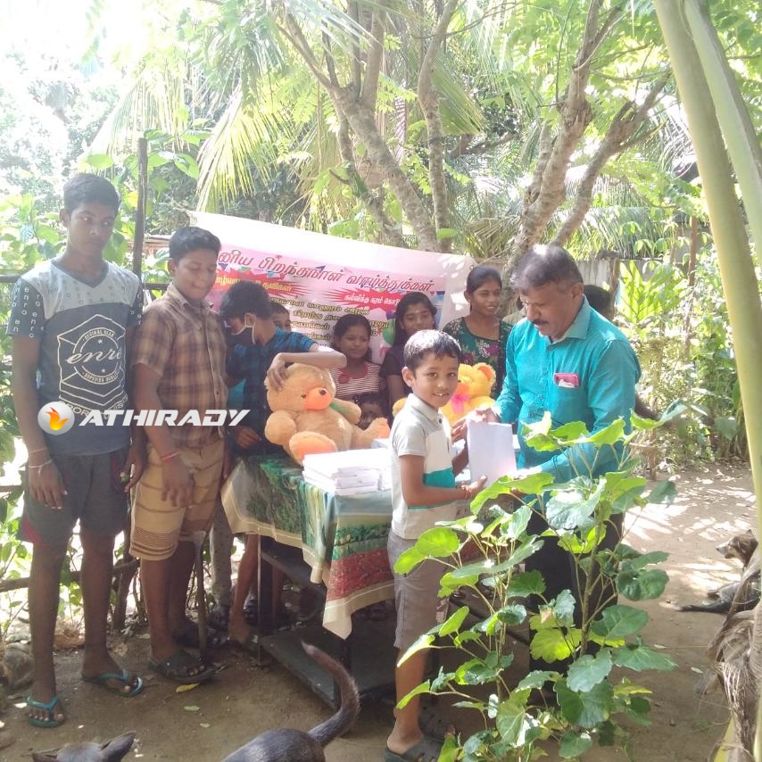 தனது பிறந்த நாளில் பலதரப்பட்ட சமூகப்பங்களிப்பை தமது தாயக உறவுகளுக்கு வழங்க விரும்பிய திருமதி தாரணி அவர்கள் தனது பிறந்தநாள் நிகழ்வில் கலந்து கொண்டு சிறப்பான பிறந்த நாளாக மாற்றிய சிறுவர்களுக்கு கற்றல் உபகரணங்கள் வழங்கும்படி கேட்டுக் கொண்டதன்படி அனைத்து மாணவர்களுக்கும் கற்றல் உபகரணங்கள் அடங்கிய பொதி வழங்கி வைக்கப்பட்டது.