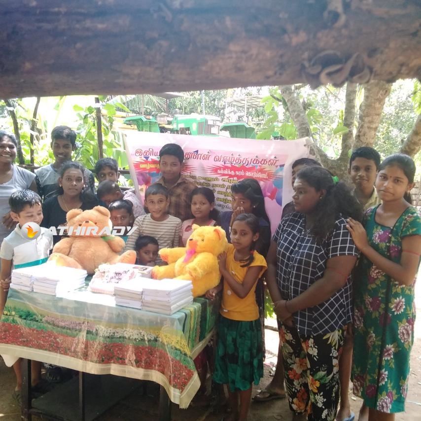 சுவிஸ் நாட்டில் வசிக்கும் திருமதி தாரணி சுவீதன் அவர்களின் பிறந்த நாள் நிகழ்வு வவுனியா அயல் கிராமமொன்றில் மாணிக்கதாசன் நற்பணி மன்றத்தின் ஏற்பாட்டில் சிறுவர்கள் கொண்டாடி மகிழ்ந்தனர்.