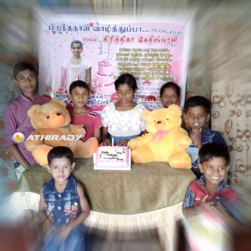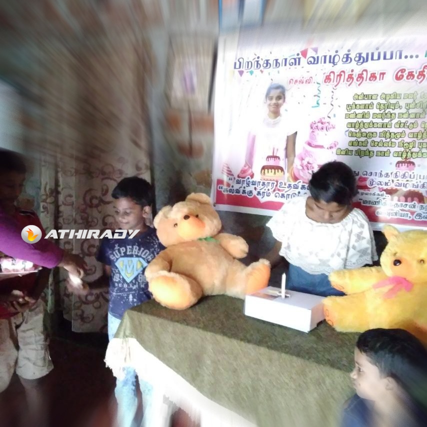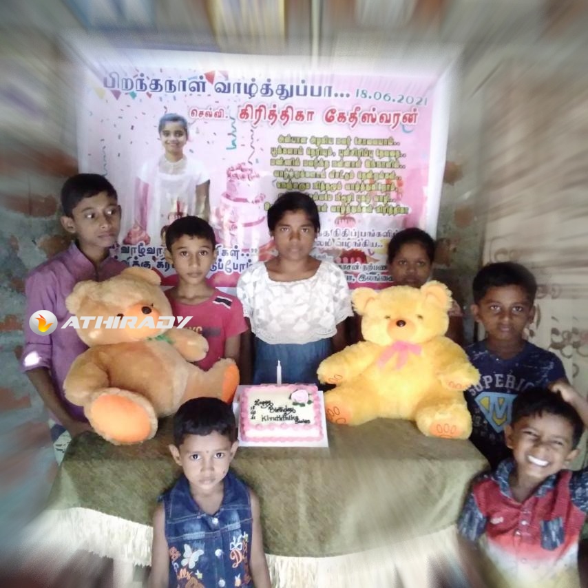சுவிஸ் பேர்ன் மாநிலத்தில் கோனிக்ஸ் பிரதேசத்தில் வசிக்கும் திரு.திருமதி.கேதீஸ்வரன் தம்பதிகளின் செல்வப் புதல்வி செல்வி கிரித்திகாவின் பிறந்தநாள் நிகழ்வு தாயகத்தில் கிராமங்களில் வாழும் சிறுவர் சிறுமிகளால் மிகவும் கலகலப்பாக மகிழ்வோடு கேக் வெட்டி பிறந்தநாள் பாட்டுப் பாடி உண்டு மகிழ்ந்து கொண்டாடப்பட்டது. விசேடமாக ஒழுங்கு செய்யப்பட்ட இடத்தில் பிறந்தநாள் நிகழ்வில் சிறுவர் சிறுமிகள் ஆர்வத்தோடு கலந்து கொண்டு செல்வி கிரித்திகாவுக்கு இனிய பிறந்தநாள் வாழ்த்துக்களையும் தெரிவித்து மகிழ்ந்தார்கள்.
