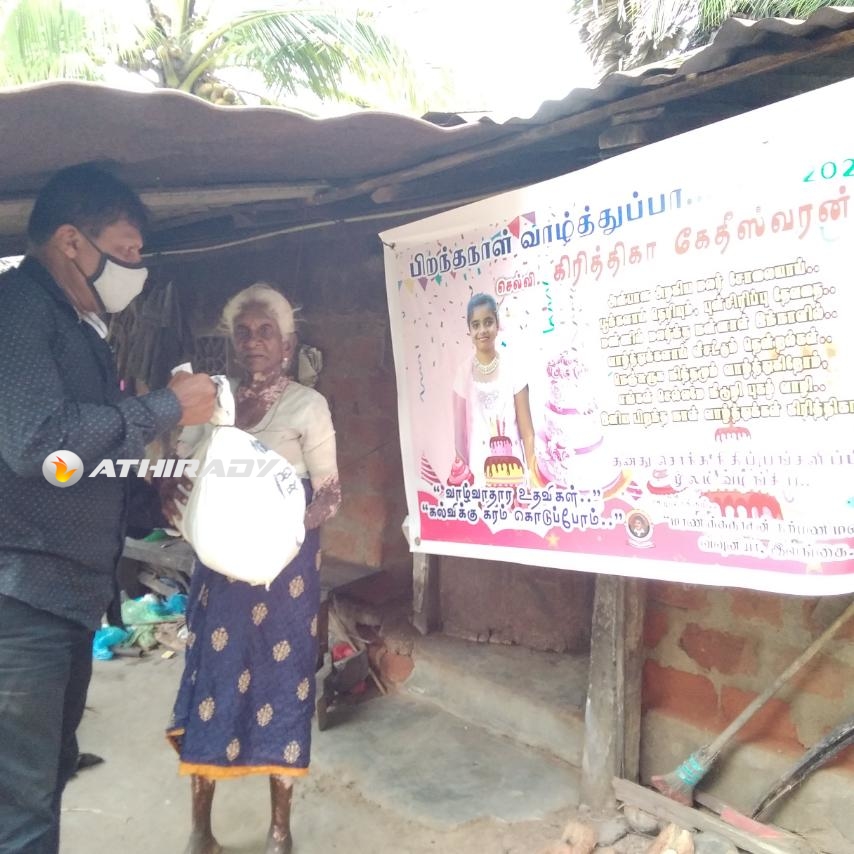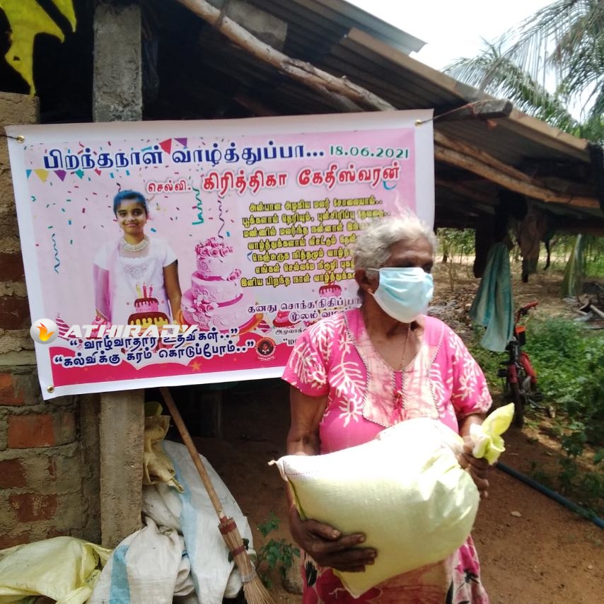 செல்வி கிரித்திகாவின் பிறந்தநாள் நிகழ்வு கிரித்திகா விரும்பிக் கேட்டுக் கொண்டதின் அடிப்படையில் பிறந்தநாள் நிகழ்வு பெரும் ஆடம்பரம் இல்லாமல், தனது பெற்றோர் எவ்வாறு சமூகப் பணிகள் செய்து மக்களோடு மக்களாக வாழ்ந்து ஏழை எளியோர் மீது அன்பு செலுத்தி மகிழ்ந்தார்களோ அவ்வாறே தனது பிறந்தநாளிலும் இடர்மிகு கொரோனா காலத்தில் மக்கள் படும் துன்ப துயரங்களை நீக்க என்ன உதவி செய்ய வேண்டுமோ அவ்வாறான உதவி வழங்கி கொண்டாட வேண்டும் என தெரிவித்ததின் பயனாக…