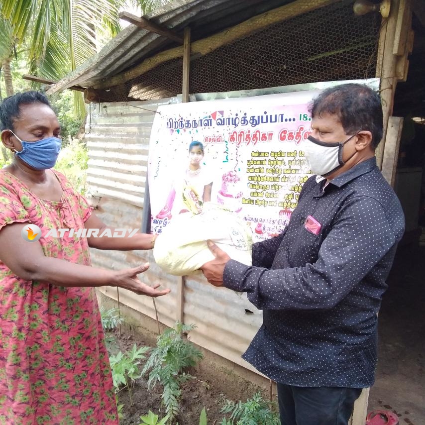 குறிப்பாக விசேட தேவையுள்ளவர்களைக் கொண்ட குடும்பம், பெண் தலைமைத்துவ குடும்பங்கள், சத்திரசிகிச்சை செய்யப்பட்ட வயோதிபக் குடும்பங்கள், கொரோனா தொற்று நோய் காரணமாக தனிமைப்படுத்தப்பட்ட குடும்பங்கள், தனித்து வாழ்வோர் குடும்பங்கள், கணவரால் கைவிடப்பட்டு குழந்தைகளோடு வாழும் தாய்மார்கள் என பலதரப்பட்ட வகையில் அன்றாட வருமானத்தை இழந்து பட்டினி நிலையில் வாழும் குடும்பங்களுக்கு செல்வி கிரித்திகாவின் பிறந்த நாளில் அவரின் நிதிப்பங்களிப்பில் உலருணவுப் பொதிகள் வழங்கி வைக்கப்பட்டது.