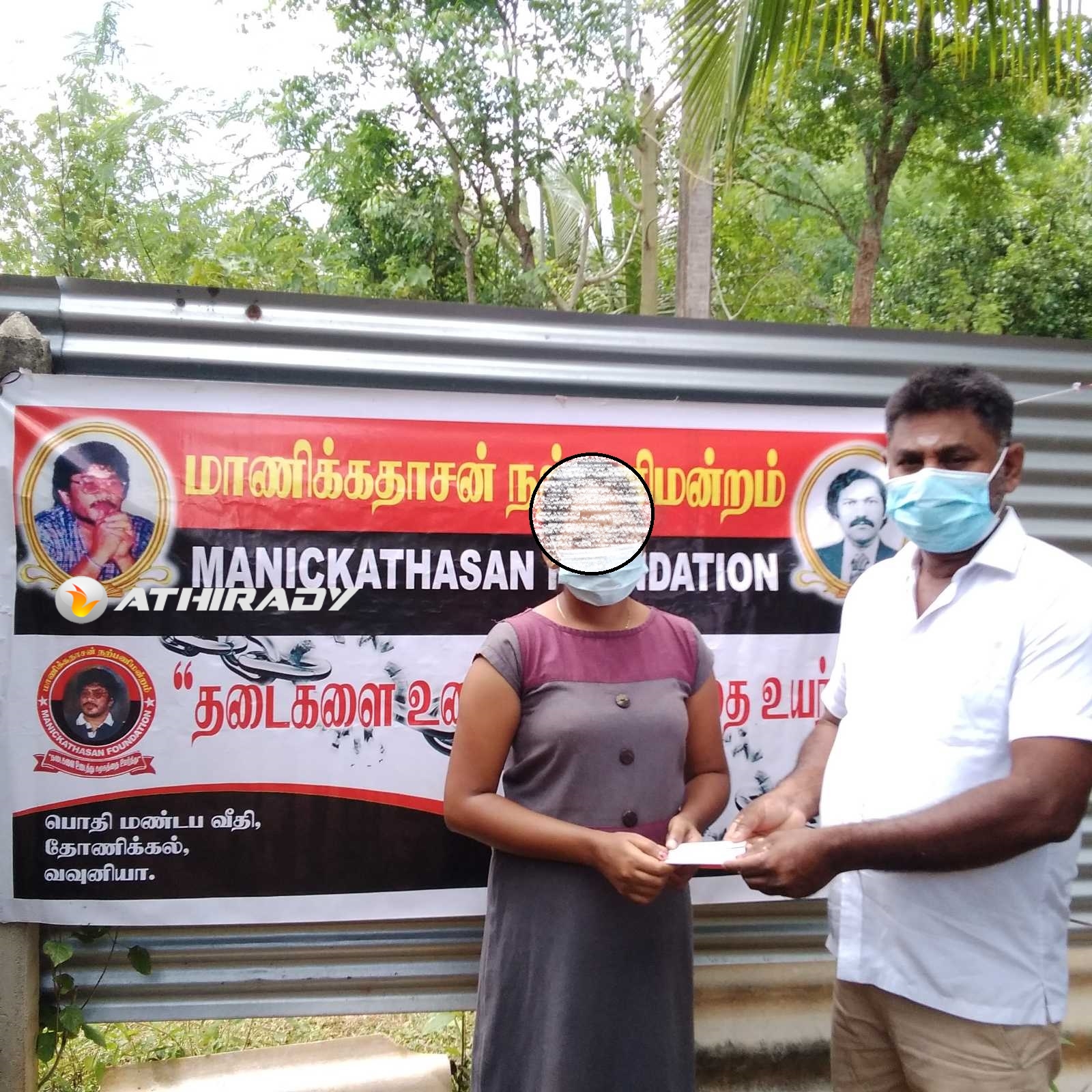 வவுனியா விபுலானந்தாக் கல்லூரியின் மாணவியான இவர் 2017 ஆண்டு சப்ரகமுவா பல்கலைக்கழகத்திற்கு தெரிவு செய்யப்பட்டு கல்வி கற்று வரும் சூழ்நிலையில் மாணவியின் தந்தைக்கு புற்று நோய் தாக்கம் ஏற்பட்டு வீட்டின் வருமானம் பாதிக்கப்பட்ட நிலையில் குறித்த மாணவி மாணிக்கதாசன் நற்பணி மன்றத்திடம் உதவி கேட்டு எழுத்துமூலம் விண்ணப்பித்திருந்தார்.