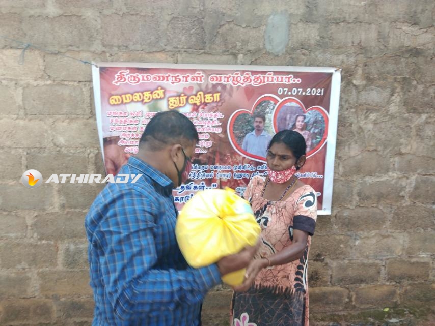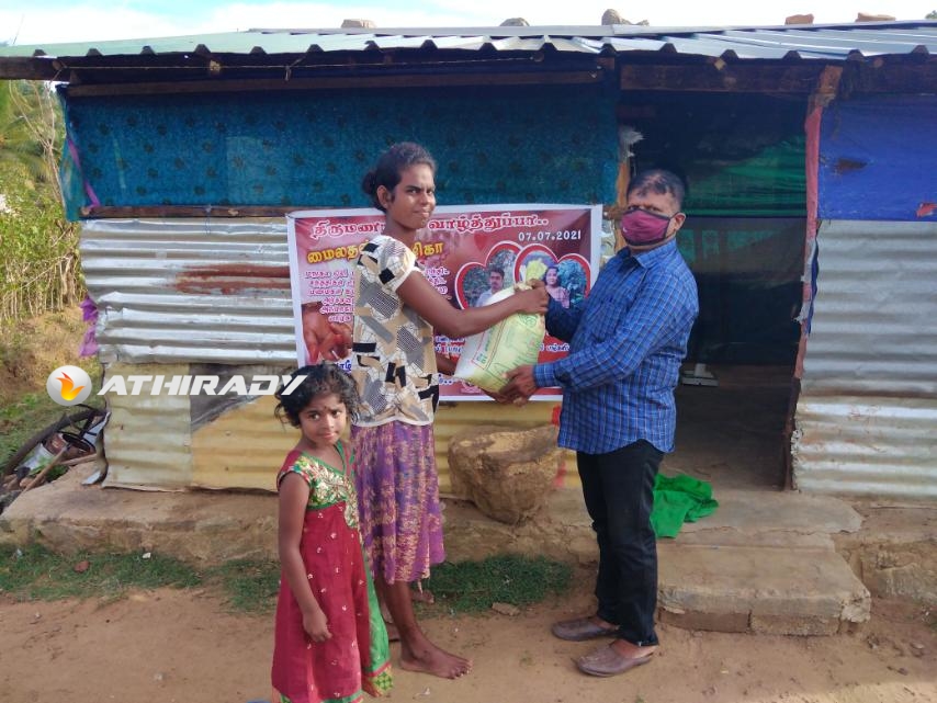 சுவிஸ் பாபுவினால், “மைலதன் துர்ஷிகா” திருமண நாளில் உலருணவுப் பொதிகள் வழங்கி வைக்கப்பட்டது.