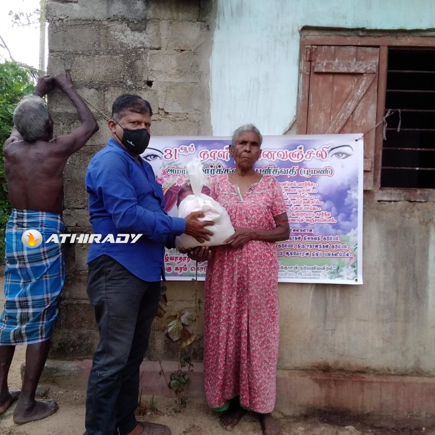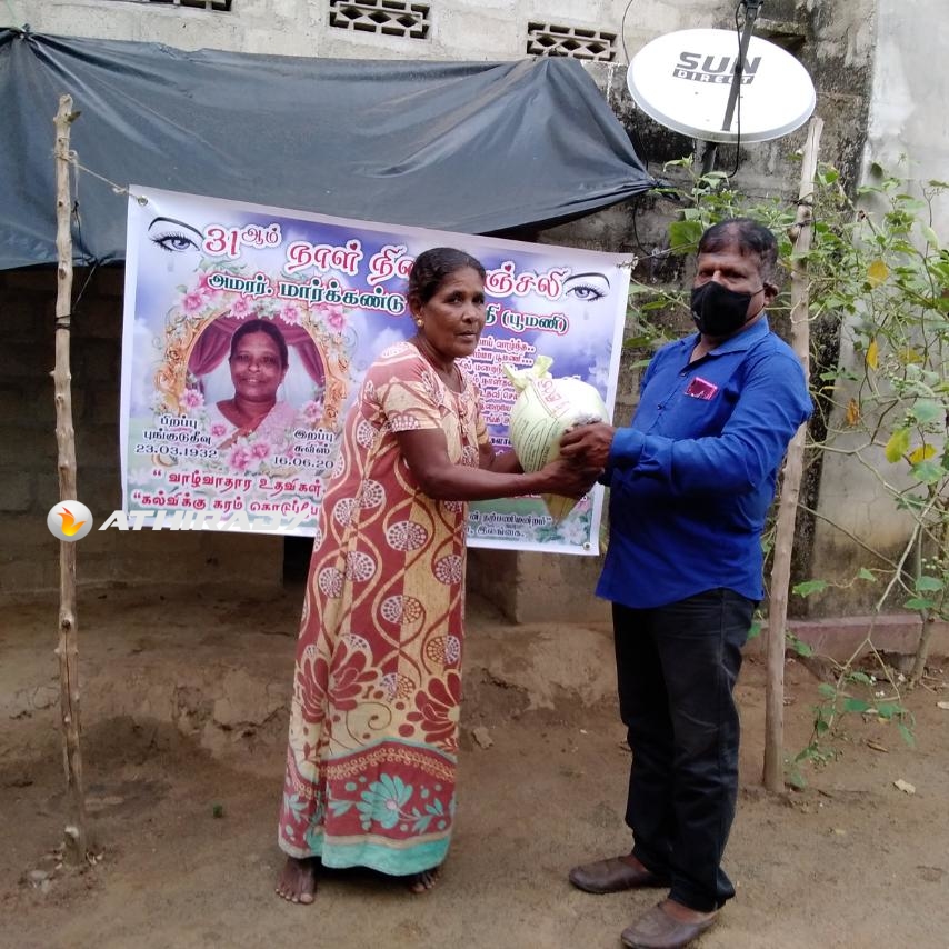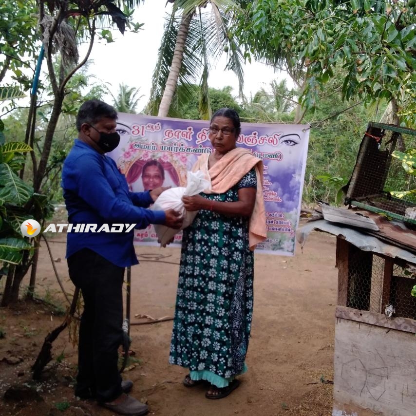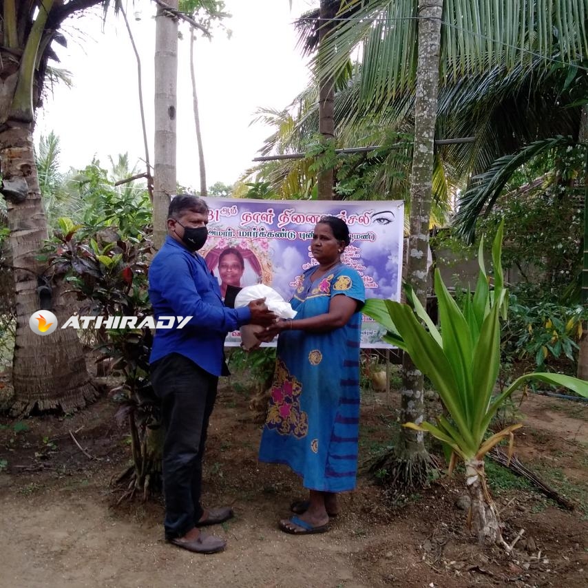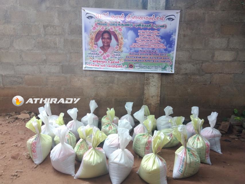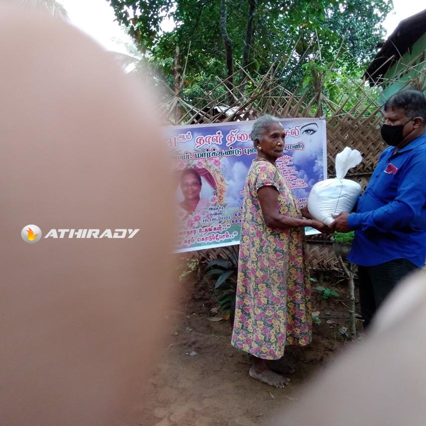 முன்னதாக கடந்த மாதம் திருமதி மார்க்கண்டு புனிதவதி அமரத்துவமடைந்து இறுதியாத்திரை நிகழ்விலும் அவரது குடும்ப நண்பர்களும், அயலவர்களுமான உறவுகளிலாலும் எமது தாயக உறவுகள் கொரோனா தொற்று காரணமாக அன்றாட வாழ்வாதார நிலை பாதிக்கப்பட்டு மக்கள் உணவுக்கு சிரமப்பட்ட போது அவர்களுக்கு அன்னையின் நினைவாக உலருணவுப் பொதிகள் வழங்கப்பட்டது குறிப்பிடத்தக்கதாகும்.
