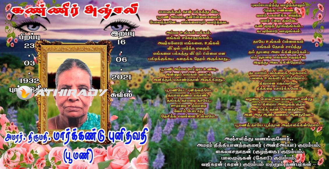 மூன்றாம் கட்டமாக “அமரர் பூமணி” அன்னையின் நினைவாக, தொடரும் வாழ்வாதார உதவிகள்.. (படங்கள்) ############################ புங்குடுதீவு மண்ணில் பிறந்து சுவிஸ் நாட்டில் அமரத்துவமடைந்த அன்னை பூமணி என அழைக்கப்படும் அமரர் மார்க்கண்டு புனிதவதி அவர்களின் முப்பத்தியோராம் நாள் நினைவாக பல்வேறு தானதருமங்களை அன்னாரின் பிள்ளைகளான திரு.திருமதி ஏகாம்பரநாதன் திலகவதி குடும்பம், திரு.திருமதி. சச்சிதானந்தன் குடும்பம், திரு.திருமதி.சதானந்தன் குடும்பம், திரு.திருமதி. தயானந்தன் குடும்பம் ஆகிய குடும்பங்களின் நிதிப்பங்களிப்பில் வாழ்வாதார உதவிகளை தொடர்ச்சியாக வழங்கி வருகின்றார்கள். சில தினங்களுக்கு முன்னர் … Continue reading மூன்றாம் கட்டமாக “அமரர் பூமணி” அன்னையின் நினைவாக, தொடரும் வாழ்வாதார உதவிகள்.. (படங்கள்)