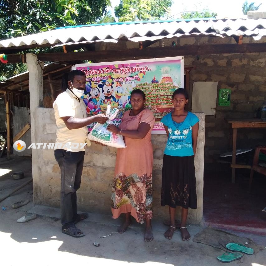 செல்வி அஞ்சனா அவர்களது பிறந்த நாள் சிறப்பாக உலருணவுப் பொதிகள் பாதிக்கப்பட்ட குடும்பங்களுக்கு வழங்கி வைக்கும் நிகழ்வினை சிறப்பிக்கும் வகையில் கலந்து கொண்ட கிளிநொச்சி கரைச்சி பிரதேச சபையின் கௌரவ சுயேட்சைக் குழு உறுப்பினர் திரு இராமையா மயில்வாகனம் கலந்து கொண்டு சிறப்பித்ததுடன் உதவி தேவைப்படும் ஒவ்வொரு குடும்பங்களையும் இனங்காட்டி மிகவும் ஒத்துழைப்பு தந்தார். மக்கள் பிரதிநிதியின் சமூப்பணியினை செவ்வனே செய்த உதவியினை காணக் கூடியதாக இருந்தது.