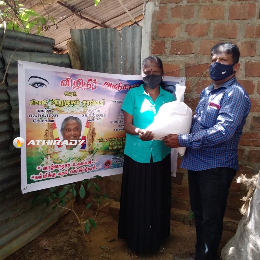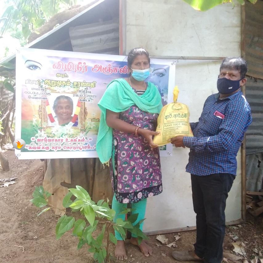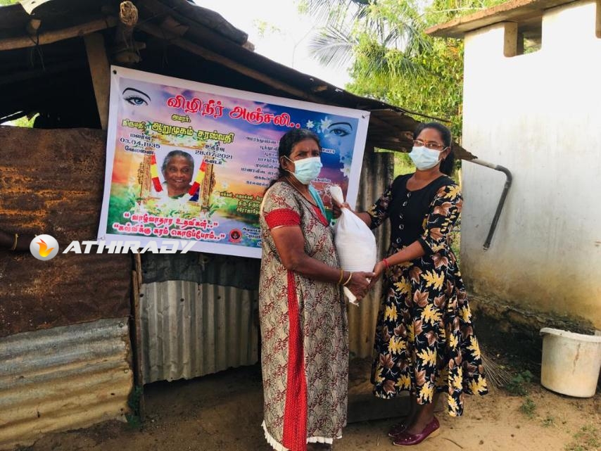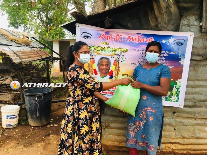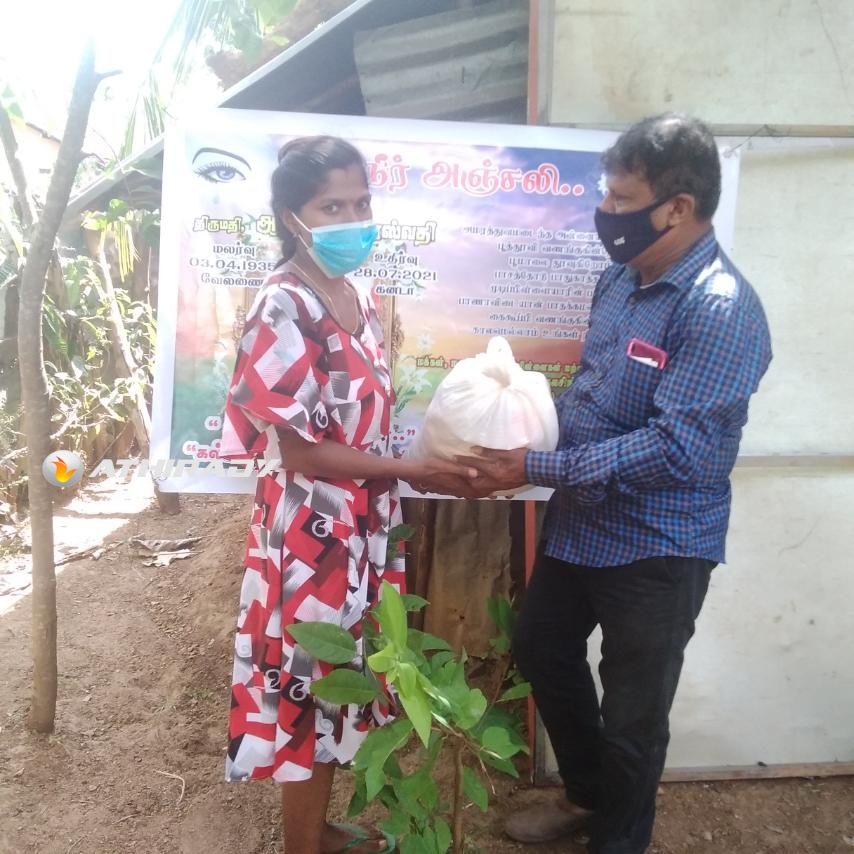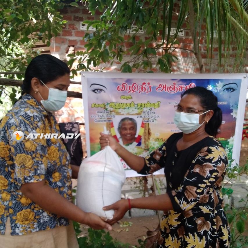 அமரர் ஆறுமுகம் சரஸ்வதி அன்னையின் ஆத்ம சாந்திபெற இறைவன் சந்நிதியில் அமைதியாக அமைதி கொள்ள இறுதி நிகழ்வு நடைபெறும் நாளில் பல்வேறு வகையில் வருமானத்தை இழந்து, வாழ்வதற்கு மிகவும் சிரமப்படும் வவுனியா புதியகோயில்குளம், .செக்கட்டிப்புலவு, கற்பகபுரம், சிவபுரம் கிராமங்களில் வசிக்கும் குடும்பங்களுக்கு உலருணவுப் பொதிகள் வழங்கி வைக்கப்பட்டது.