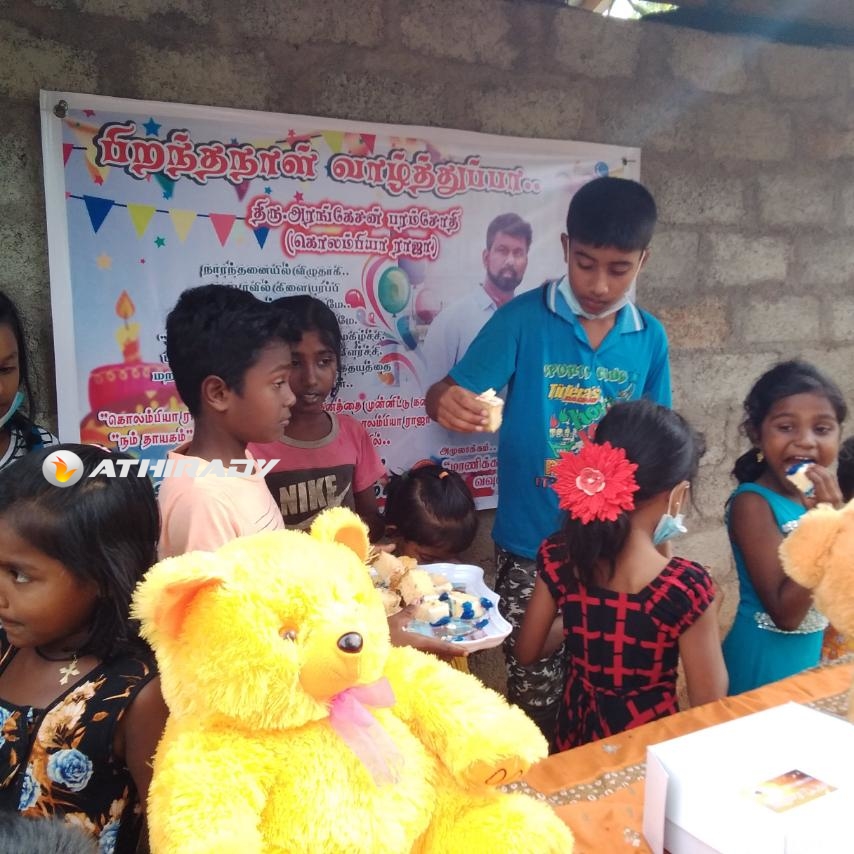 கனடா “நம் தாயகம்” குழுமத்தின் உரிமையாளர்களின் ஒருவரும் மாணிக்கதாசன் நற்பணி மன்றத்தின் கனடா கிளையின் இணைப்பாளர்களின் ஒருவருமான “சமூகநேயன்” குணராஜா உதயராஜா அவர்களின் நண்பரும், ஊடகத்துரையினைச் சார்ந்தவரும், தமிழ்த் தேசிய கொள்கையின் தீவிர பற்றாளருமான “கொலம்பியா ராஜா” எனும் திரு.அரங்கநேசன் பரம்சோதி அவர்களது பிறந்த தாள் நிகழ்வினை மாணிக்கதாசன் நற்பணி மன்றத்தினால் வவுனியா மன்னார் வீதி தாலிக்குளம் கிராமத்தில் “மன்றத்தின் கிராமிய இணைப்பாளர்” திருமதி றமணி அவர்களால் ஏற்பாடு செய்யப்பட்டடு, சிறுவர் சிறுமியர் அடங்கலாக பெரியோர்களும் அதிகளவாக கலந்து கொண்டு விமர்சையாக கொண்டாடப்பட்டது.