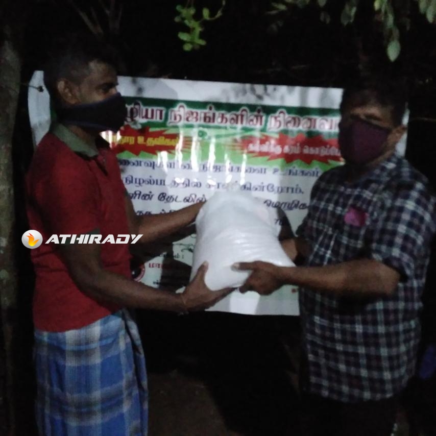 மாணிக்கதாசன் நற்பணி மன்றமும் உடனடியாக சுவிஸ்வாழ் தமிழுறவான கந்தையா குணரட்ணம் அவர்கள் தனது பெற்றோரான அமரர்கள் கந்தையா சீதேவன்பிள்ளை ஆகியோரின் நினைவாக மாணிக்கதாசன் நற்பணி மன்றத்திக்கு வழங்கிய நிதியில் ஒரு பகுதியை வாழ்வாதார உதவியாக உலருணவுப் பொதியை மாலை நேர கறுக்கல் என எதனையும் பாராது அவசர உதவி கேட்டோரின் இல்லம் சென்று உலருணவுப் பொதிகள் வழங்கி வைக்கப்பட்டது.