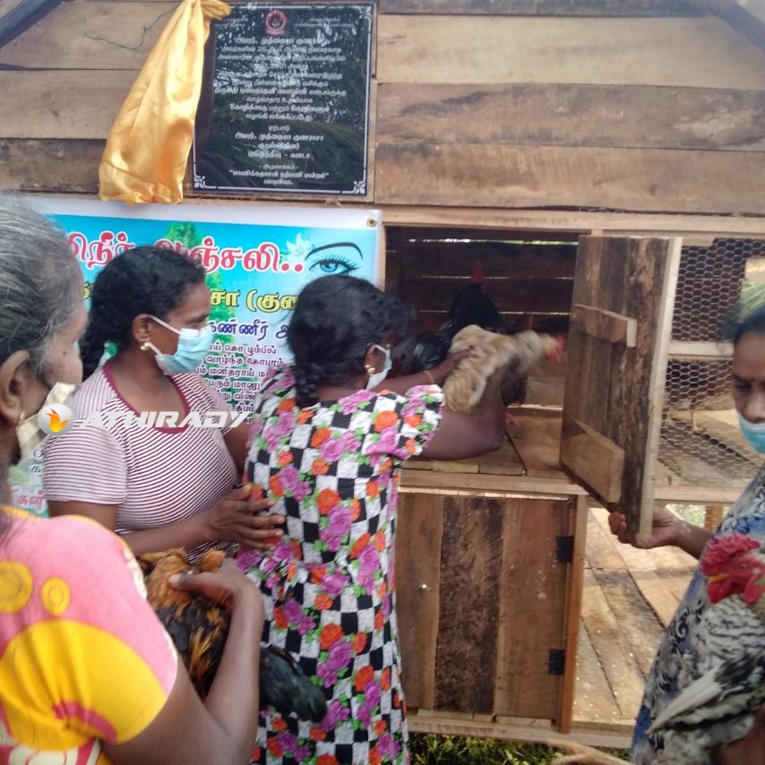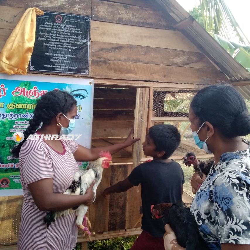 “அமரர் முத்தையா குணராசா அவர்களது 25 ஆவது ஆண்டு நினைவாக அவர்களது குடும்பத்தின் நிதிப்பங்களிப்பில் எனது குடும்பத்திற்கு வாழ்வாதார உதவியாக கோழிக் கூடு வழங்கியுள்ளார்கள். அவர்களை கை எடுத்து கும்புடுகிறேன் நன்றி.. ரொம்ப நன்றி உங்கள் அனைவருக்கும்” என்றார்.
