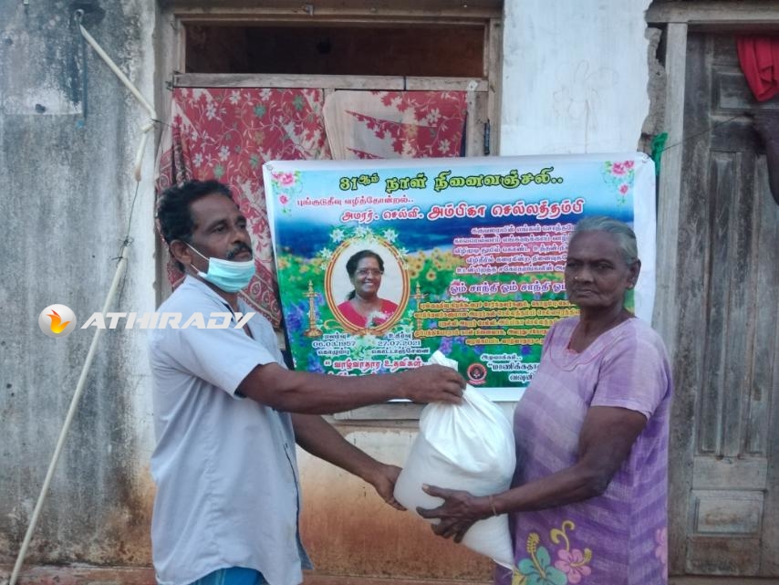 இதேபோல் அமரர் செல்வி.அம்பிகா செல்லத்தம்பி அவர்களின் சகோதரங்கள் வழங்கிய நிதிப் பங்களிப்பில் புங்குடுதீவு மற்றும் வன்னிப் பிரதேசத்தில் “உலருணவுப் பொதிகள்” வழங்கப்பட உள்ளது குறிப்பிடத்தக்கது.. தற்போதைய கொரோனா முழுமுடக்கம் காரணமாக ஓரிருவாரங்களில் இவ் நிகழ்வுகள் நடைபெற உள்ளது. ஆயினும் இன்றைய (நேற்று) முப்பத்தியொராம் நாளில் சகோதரர்களின் நிதிப் பங்களிப்பில் வாழ்வாதார உதவிகளை வழங்க வேண்டும் என்பதுக்காக, குறிப்பிட்ட சில உலருணவுப் பொதிகள் மட்டும் நேற்று மாலை வழங்கப்பட்டது.
