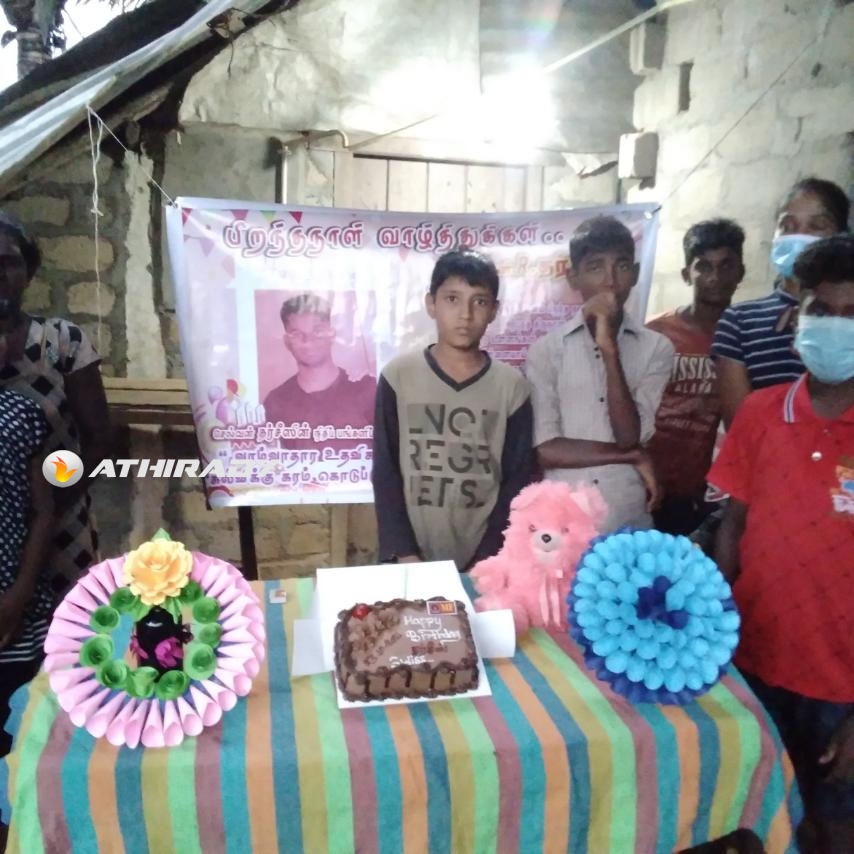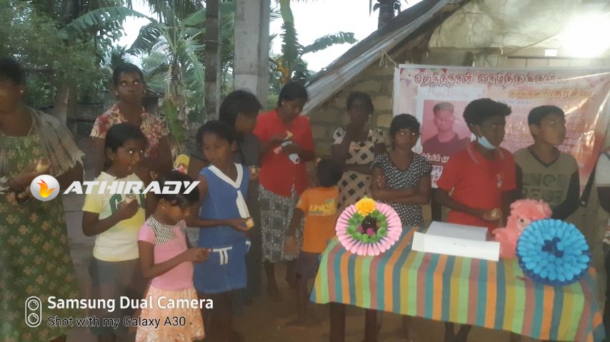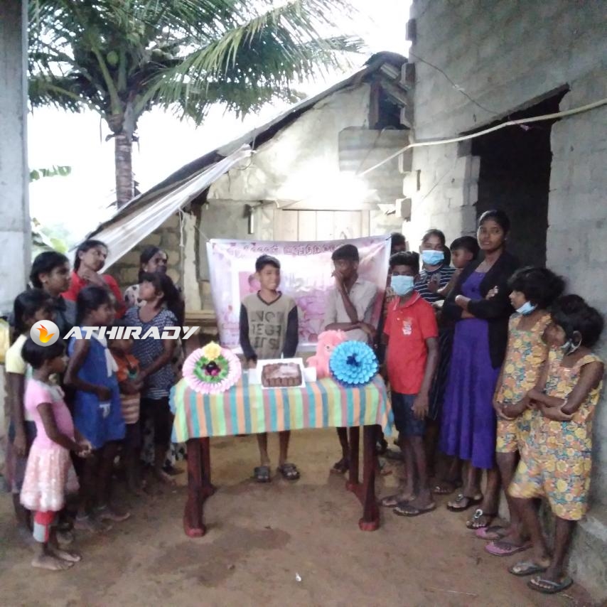 தாயக உறவினை பூர்வீகமாகக் கொண்ட பெற்றோருக்கு சுவிஸ் நாட்டில் பிறந்து வாழ்ந்து வரும் உறவான செல்வன் தரசீஸ் அவர்களின் 17 வது பிறந்தநாளை முன்னிட்டும் எதிர்வரும் நாட்களில் தர்சீஸ் அவர்களின் தாயாருடைய பிறந்த நாளையும் முன்னிட்டு தாயக உறவுகளுக்கு வாழ்வாதார உதவியாக கோழிகளுடன், கோழிக்கூட்டினை வழங்கவிருந்த போதிலும் தர்சீஸ் அவர்களின் பிறந்த நாளான இன்று தர்சீஸ் அவர்களின் பிறந்த நாளை சிறப்பிக்கும் வகையில் அவருடைய தாயார் மாணிக்கதாசன் நற்பணி மன்றத்திடம் விரும்பிக் கேட்டுக் கொண்டதற்கமைவாக தாயக கிராமமொன்றில் சிறுவர் சிறுமியர் பெற்றோர்கள் கொட்டும் மழையினையும் பொருட்படுத்தாது தர்சீஸ் அவர்களின் பிறந்த நாள் கொண்டாட்டத்தில் கலந்து கொண்டு சிறப்பித்தனர்.
