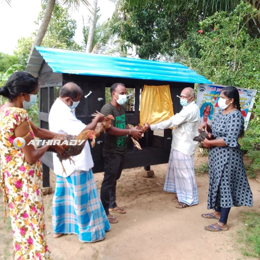 அதனைத் தொடர்ந்து வாழ்வாதார உதவி வழங்கள் நிகழ்வுக்கு வருகை தந்தோர் கோழிகளை கூட்டுக்குள் வைத்தனர்.. தொடர்ந்து கிராம அபிவிருத்திச் சங்கத்தின் தலைவர் உரையாற்றினார் “குறிப்பாக சரியான இலக்கினைத் தேடி பொருத்தமானவர்களைத் தெரிவு செய்து வாழ்வாதார உதவியினை வழங்கியுள்ளீர்கள் நல்ல விடயம்” என பாராட்டினார் .
