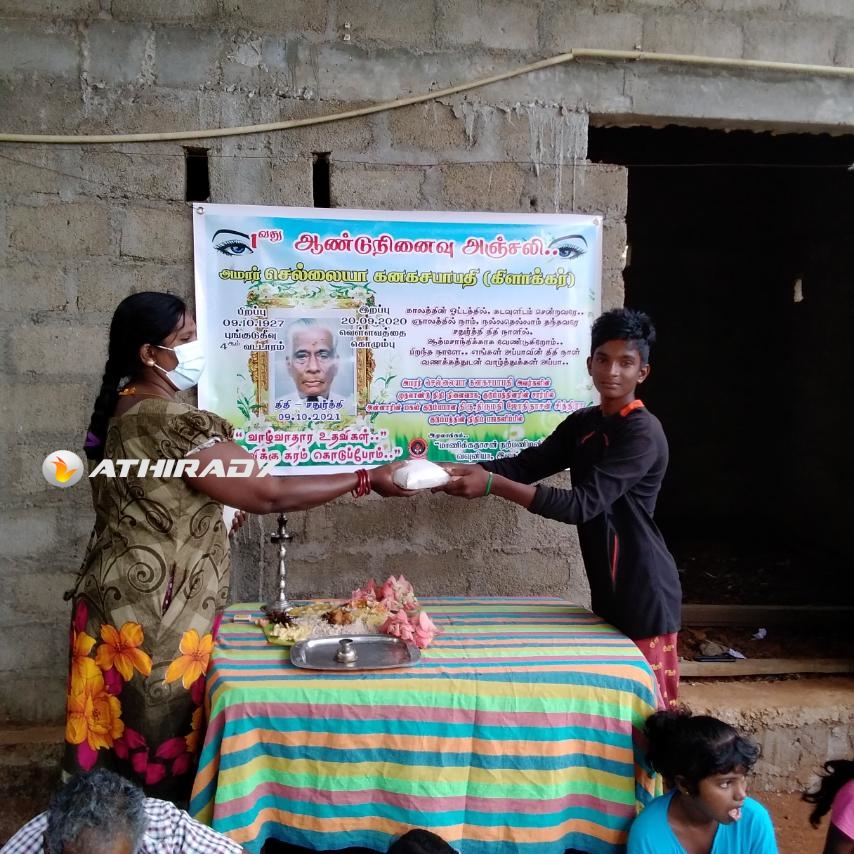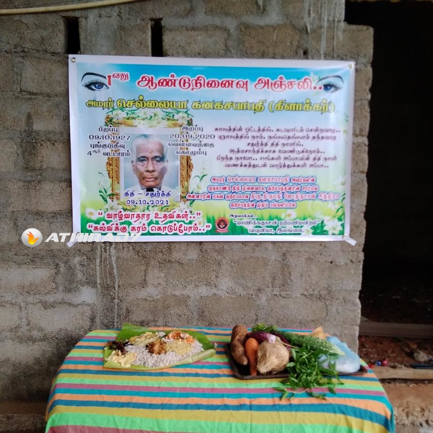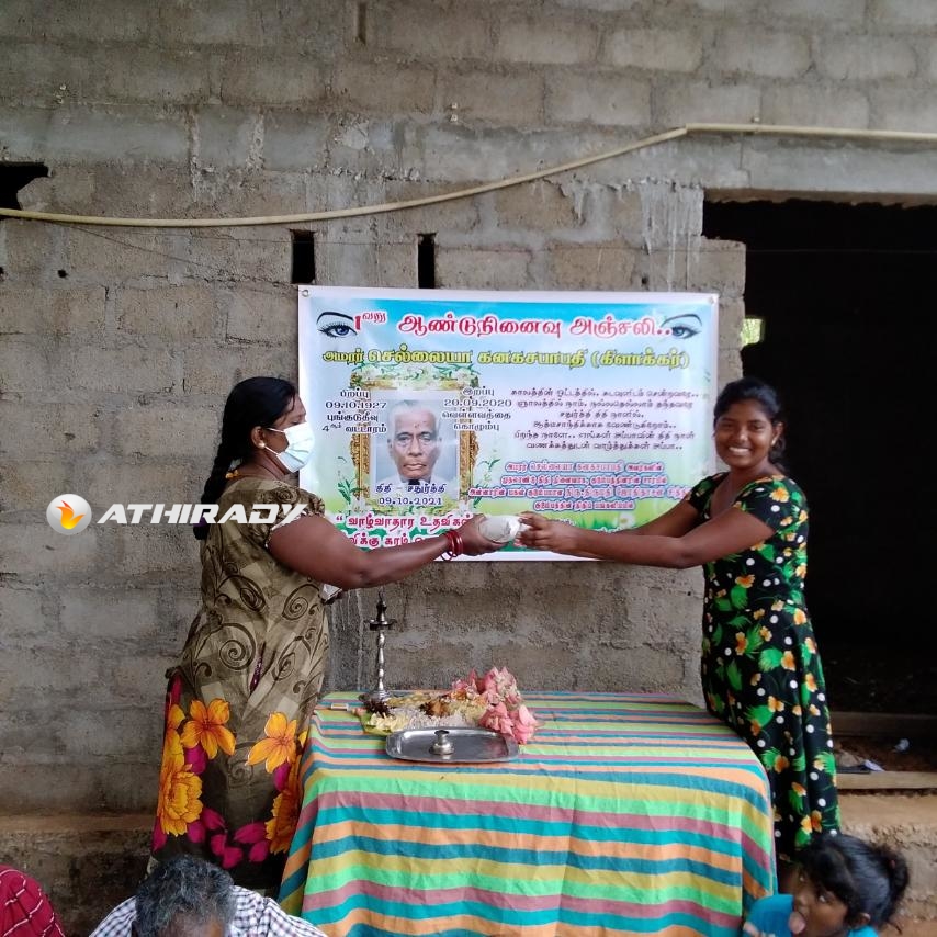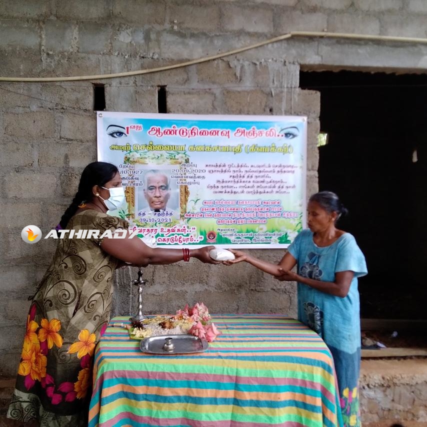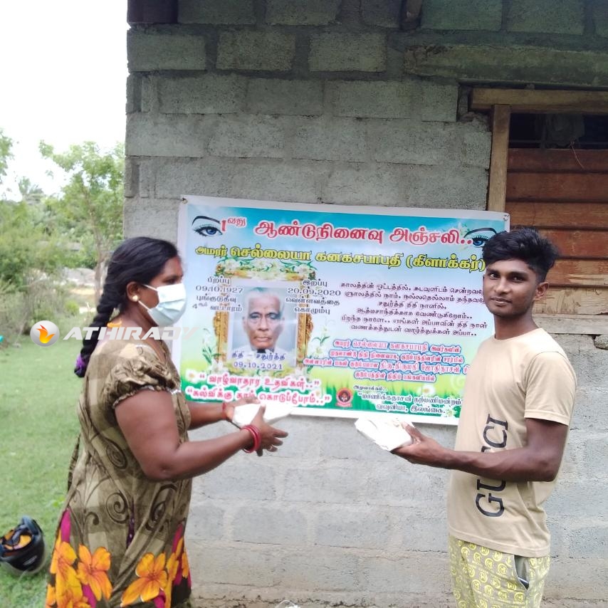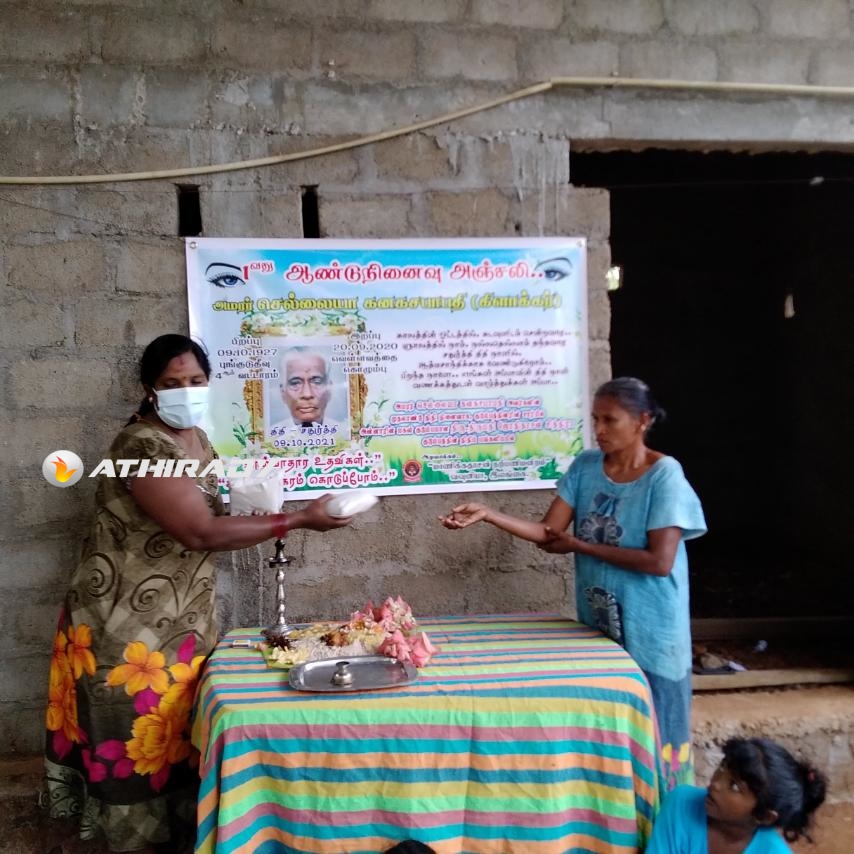 அமரர் செல்லையா கனகசபாபதி அவர்களின் முதலாமாண்டு சதுர்த்தி திதியினை அனுஸ்டிக்குமுகமாக அன்னாரின் குடும்பத்தின் சார்பில் அன்னாரின் மகள் திரு.திருமதி. ஜோதிதாசன் சித்திரா குடும்பத்தின் நிதிப்பங்களிப்பில் மேற்படி நிகழ்வுகளை மாணிக்கதாசன் நற்பணி மன்றத்தினால் ஒழுங்கமைப்பு செய்யப்பட்டு நடைமுறைப்படுத்தப் பட்டது.