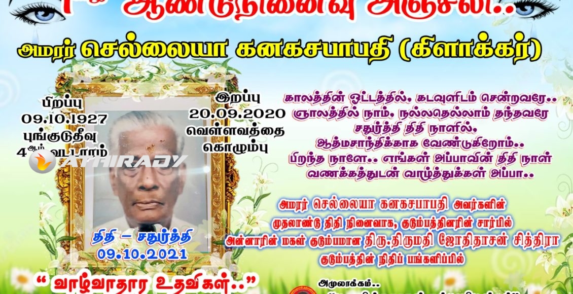 புங்குடுதீவு அமரர் கனகசபாபதி அவர்களின் முதலாமாண்டு திதி அனுஸ்டிப்பு.. (படங்கள், வீடியோ)