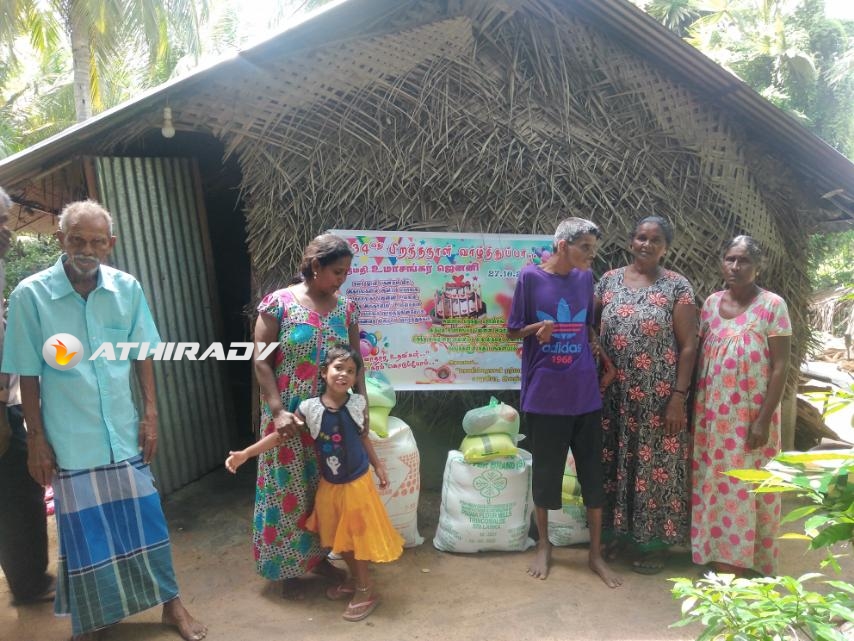 யாழ் அச்சுவேலியை பூர்வீகமாக கொண்ட சுவிஸ் நாட்டில் பிறந்து பிரான்ஸ் நாட்டில் வாழும் திருமதி உமாசங்கர் ஜெனனி அவர்களின் பிறந்த நாள் நிகழ்வு மாணிக்கதாசன் நற்பணி மன்றத்தின் ஒழுங்கமைப்பில் மன்னார் மாவட்ட முருங்கன் பிரதேசத்தில் உள்ள கிராமங்களில் மிகவும் பாதிக்கப்பட்ட குடும்பங்களுக்கு வாழ்வாதார உதவியாக உலருணவுப் பொதிகள் வழங்கி வைக்கப்பட்டது.