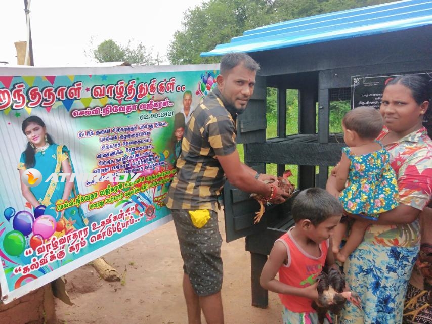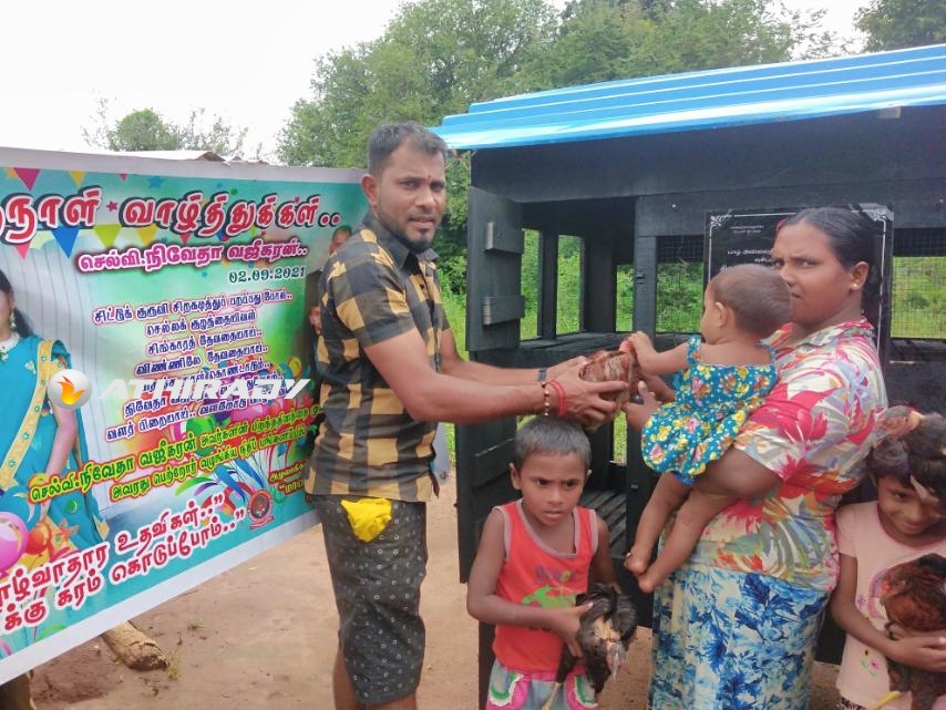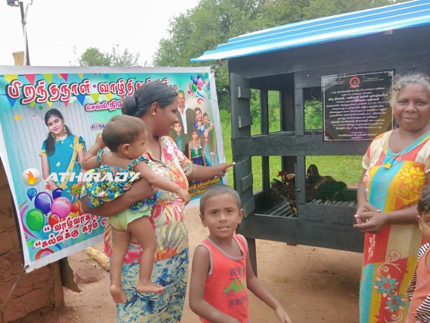 சுவிஸ் செல்வி.நிவேதா பிறந்தநாளை முன்னிட்டு வாழ்வாதார உதவியாக கோழிக்கூடு வழங்கல்.. (படங்கள், வீடியோ)