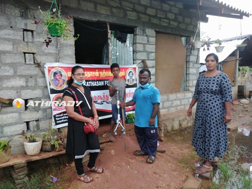 அவ்வாறு சென்றவேளையில் குறித்த மாற்றுத்திறனாளியாண தனுசனையும் அவரின் குடும்ப சூழ்நிலையினையும் அவதானித்தோம்.. அந்தவகையில் மிகவும் வறிய நிலையில் தந்தையாரின் நாளாந்த கூலி வறுமானத்தில் வாழும் தனுசனுக்கு எந்தவிதமான் மாற்றுத் திறனாளிக்குறிய உதவியினை செய்து கொடுக்க முடியாத சூழ்நிலையில் செல்வன்.தனுசனின் வாழ்க்கையினை அவதானித்தோம்.. எனவே தான் தனுசனின் தேவையான “மாணிக்கதாசன் நற்பணி மன்றம்” நிறைவேற்றித் தரும் என்ற உறுதிமொழியினை மட்டும் கூறிவிட்டு வந்தோம்.