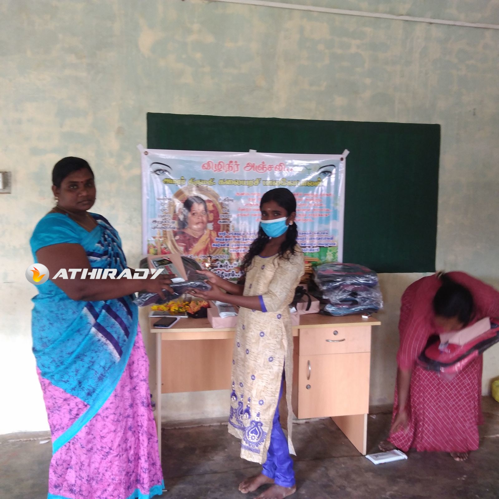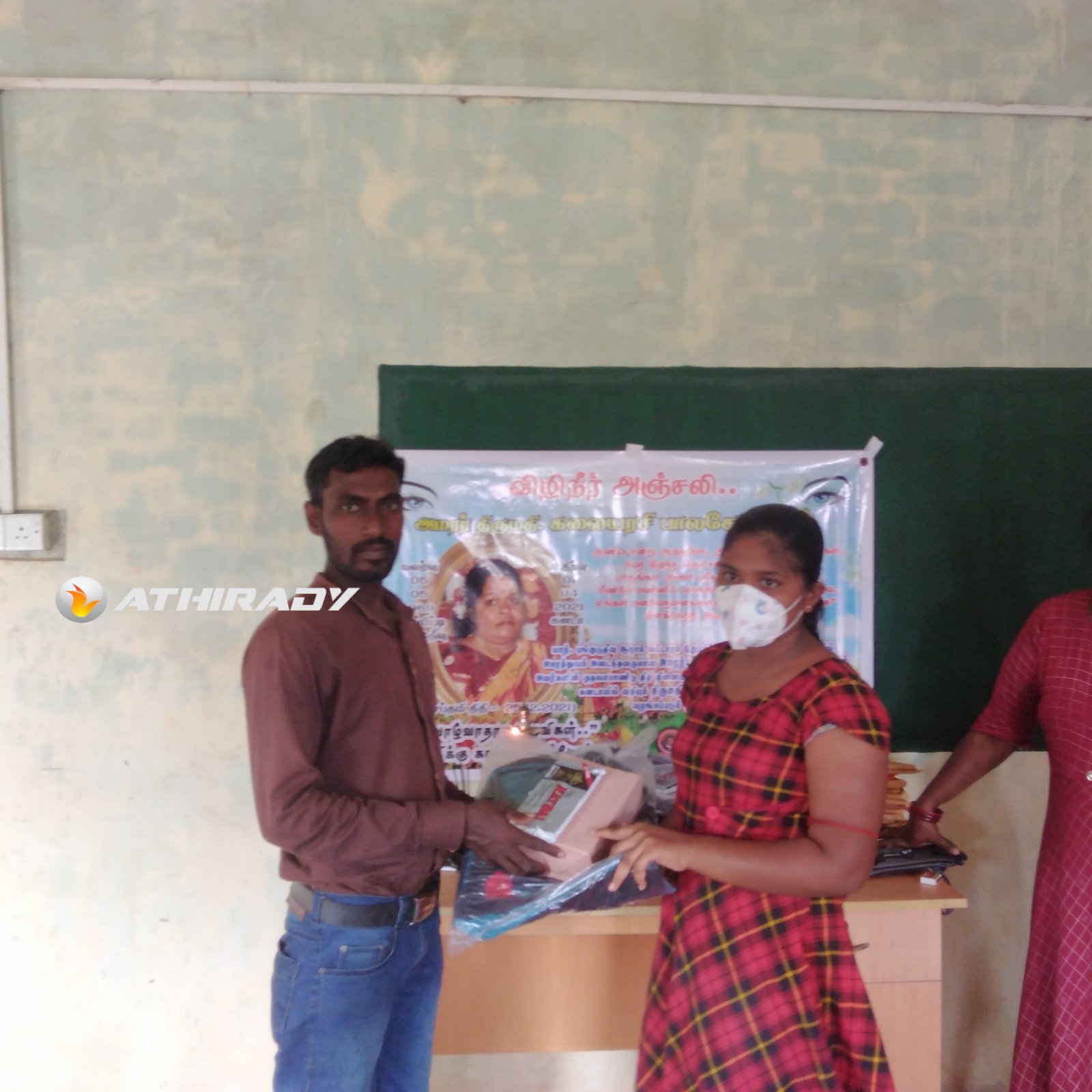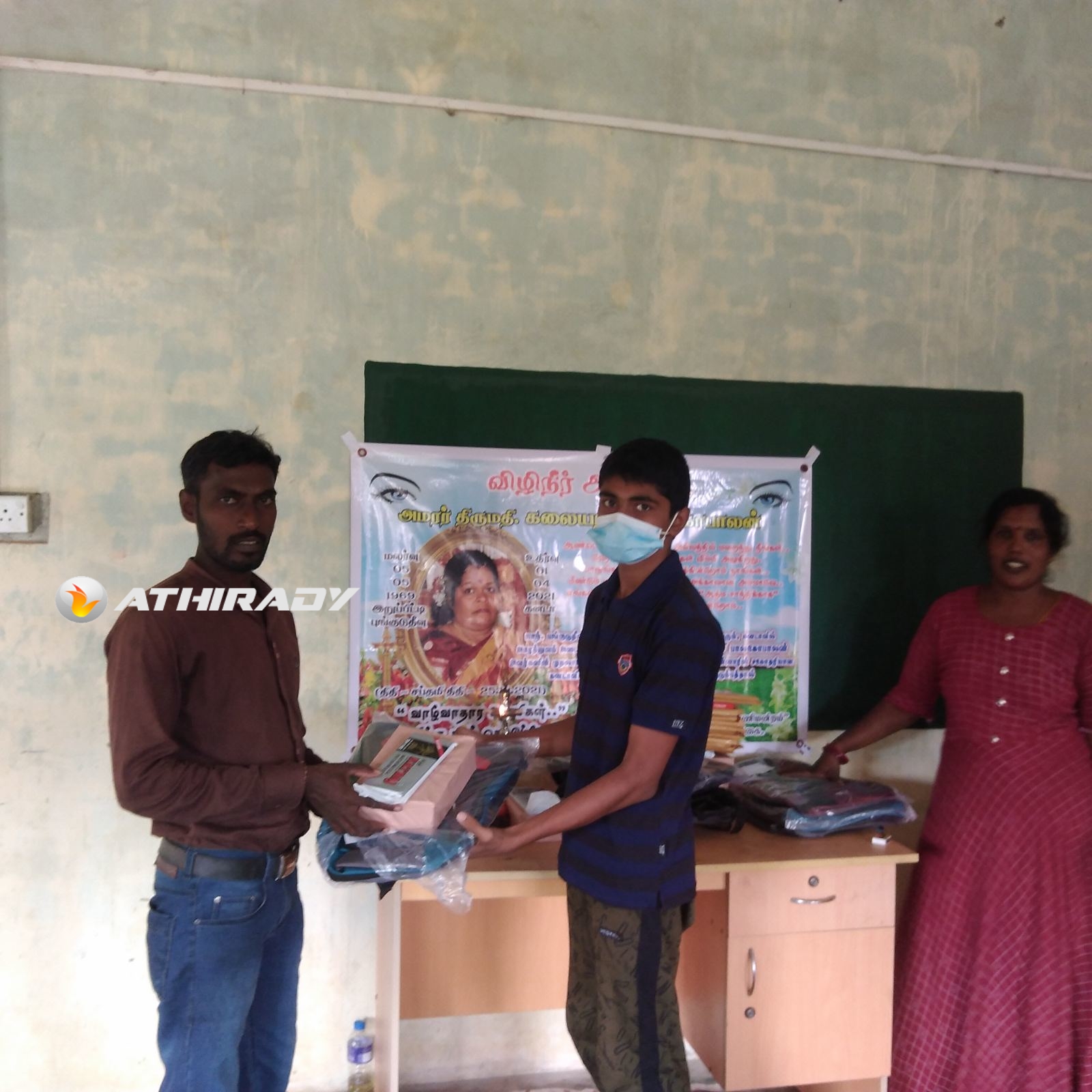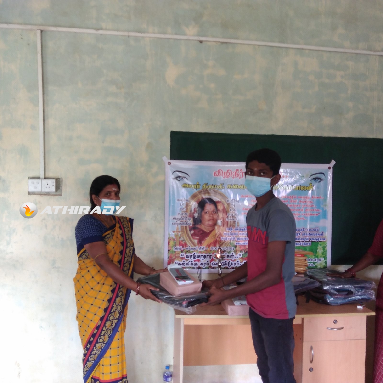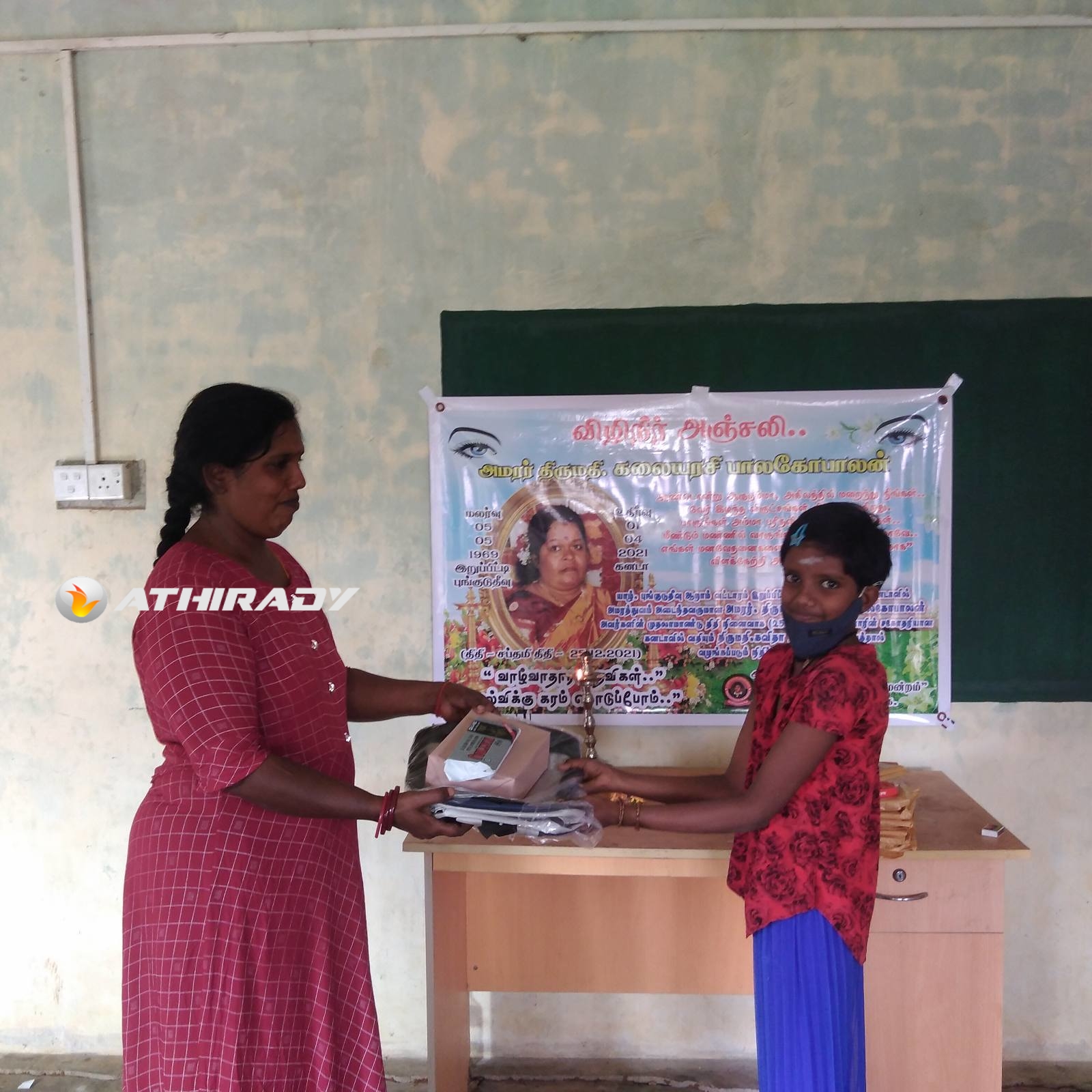 அதனைத் தொடர்ந்து அமரர் கலையரசி கோபாலன் அவர்களது நினைவாக அவரது சகோதரியான கனடாவில் வசிக்கும் திருமதி கவிதா இந்திரன் தம்பதிகளால் வழங்கப்பட்ட அடுத்த வருடத்திற்று தேவையான முழுமையான கற்றலுக்கு தேவையான பாடசாலை உபகரணங்கள் வழங்கி வைக்கப்பட்டது.