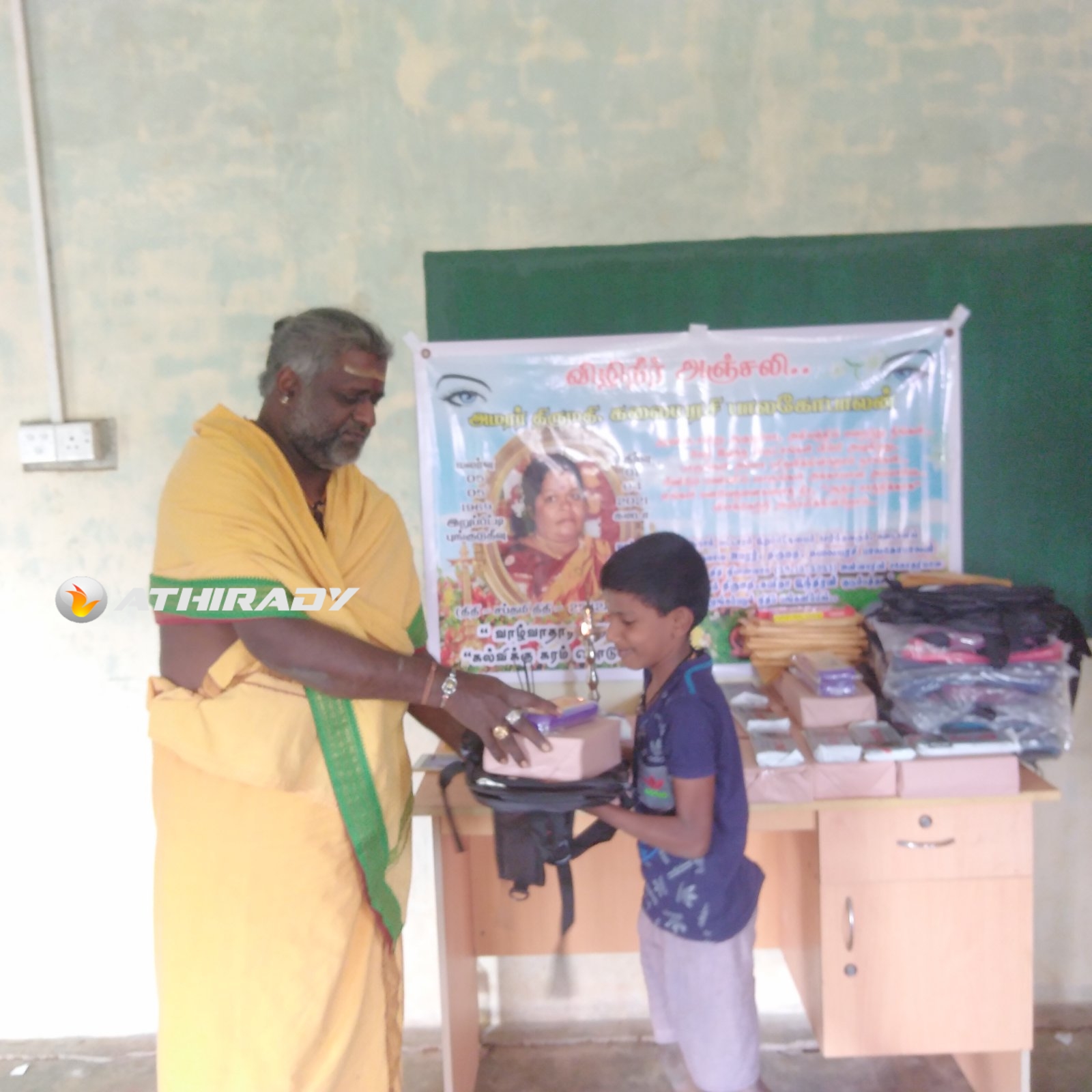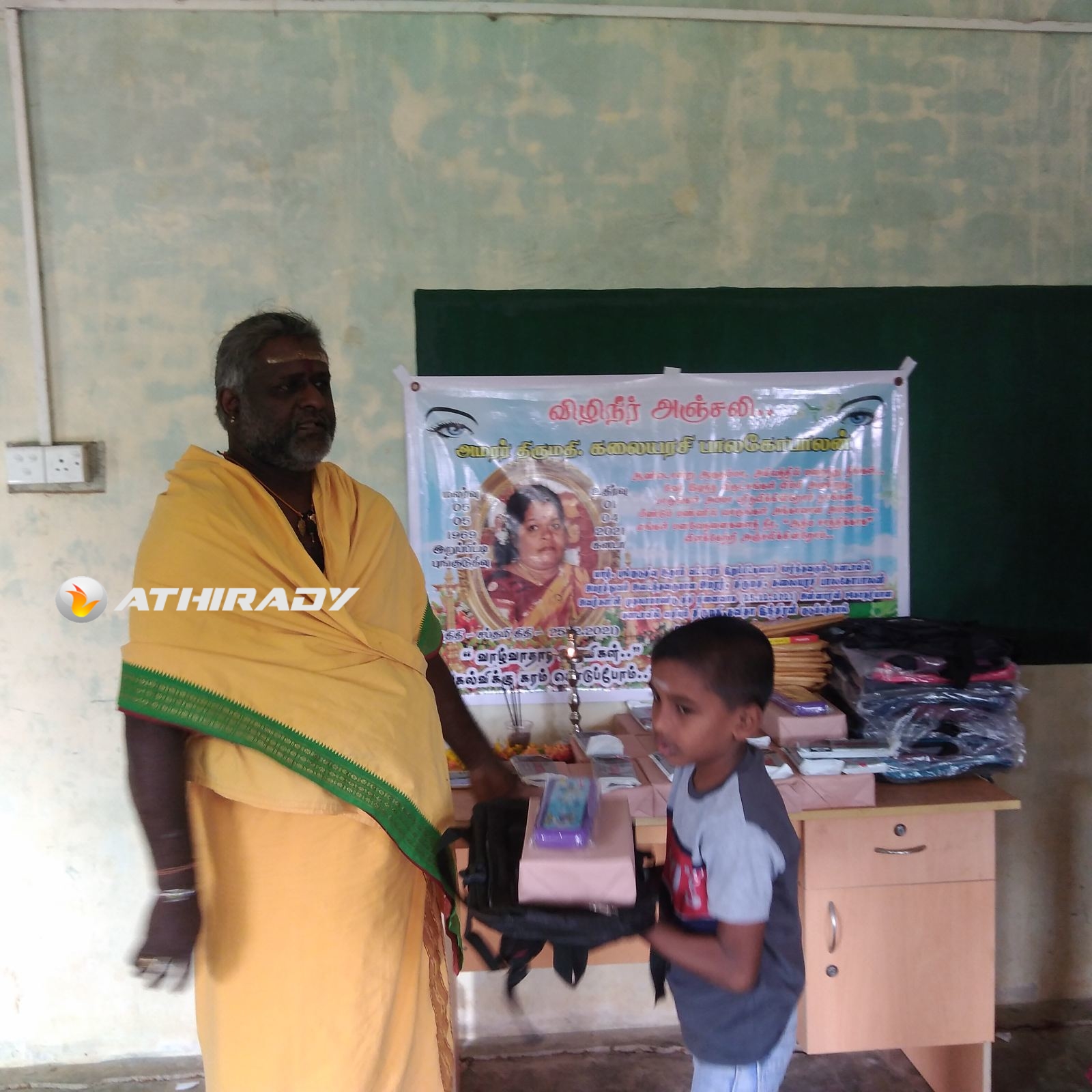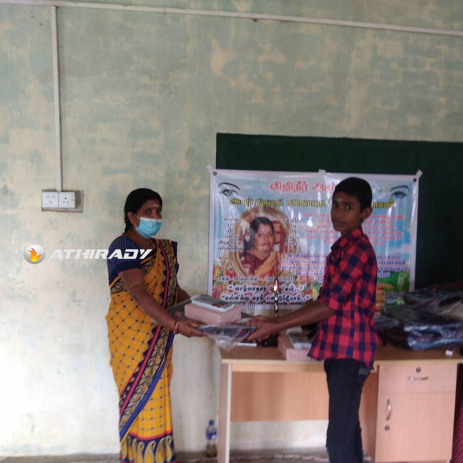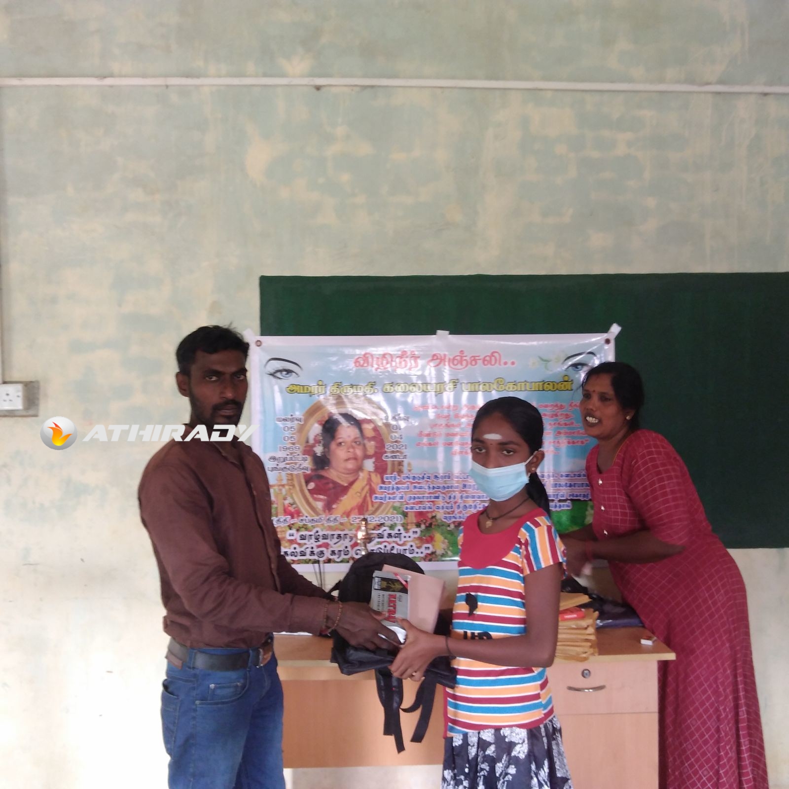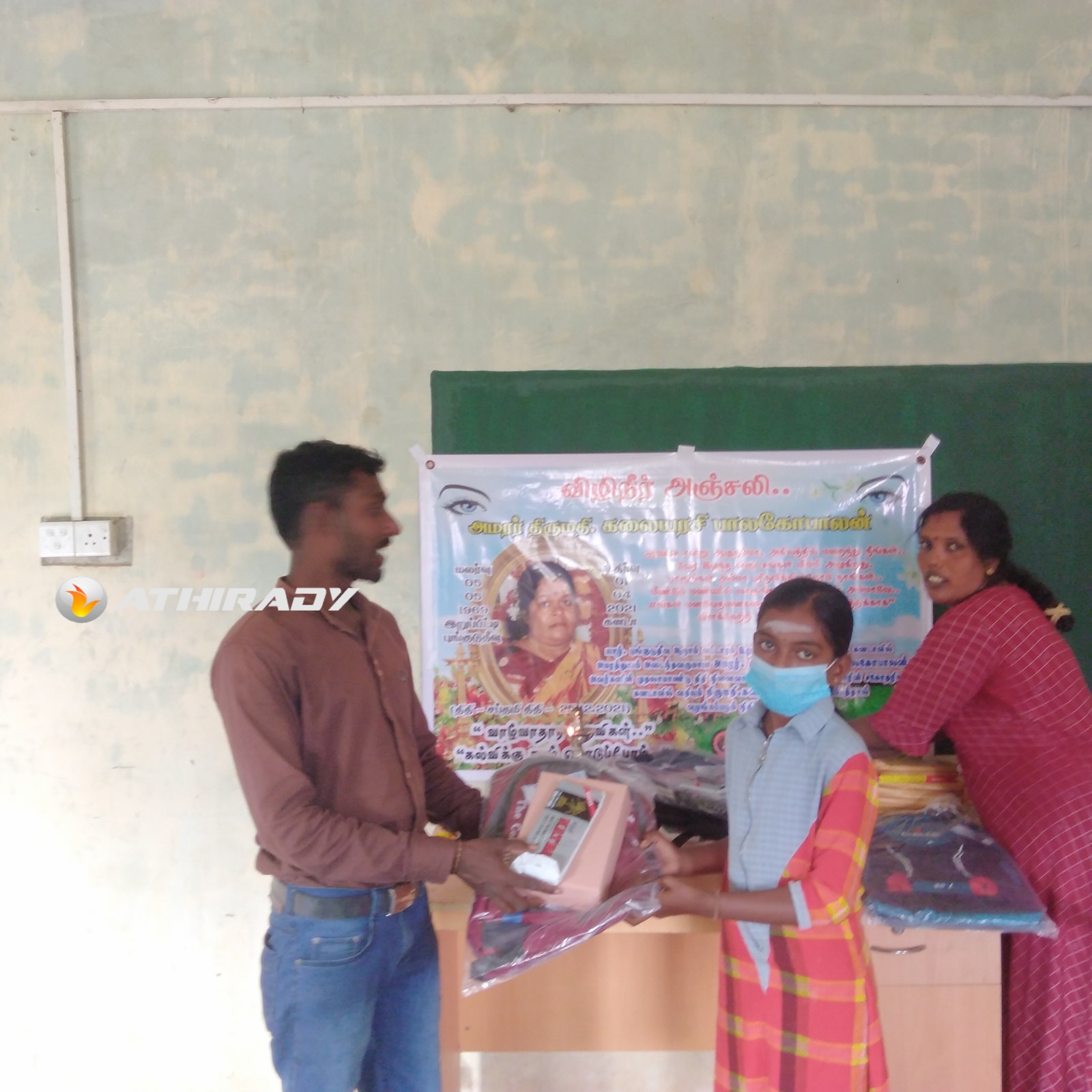 அதனைத் தொடர்ந்து அமரர் கலையரசி கோபாலன் அவர்களது நினைவாக அவரது சகோதரியான கனடாவில் வசிக்கும் திருமதி கவிதா இந்திரன் தம்பதிகளால் வழங்கப்பட்ட அடுத்த வருடத்திற்று தேவையான முழுமையான கற்றலுக்கு தேவையான பாடசாலை உபகரணங்கள் வழங்கி வைக்கப்பட்டது.