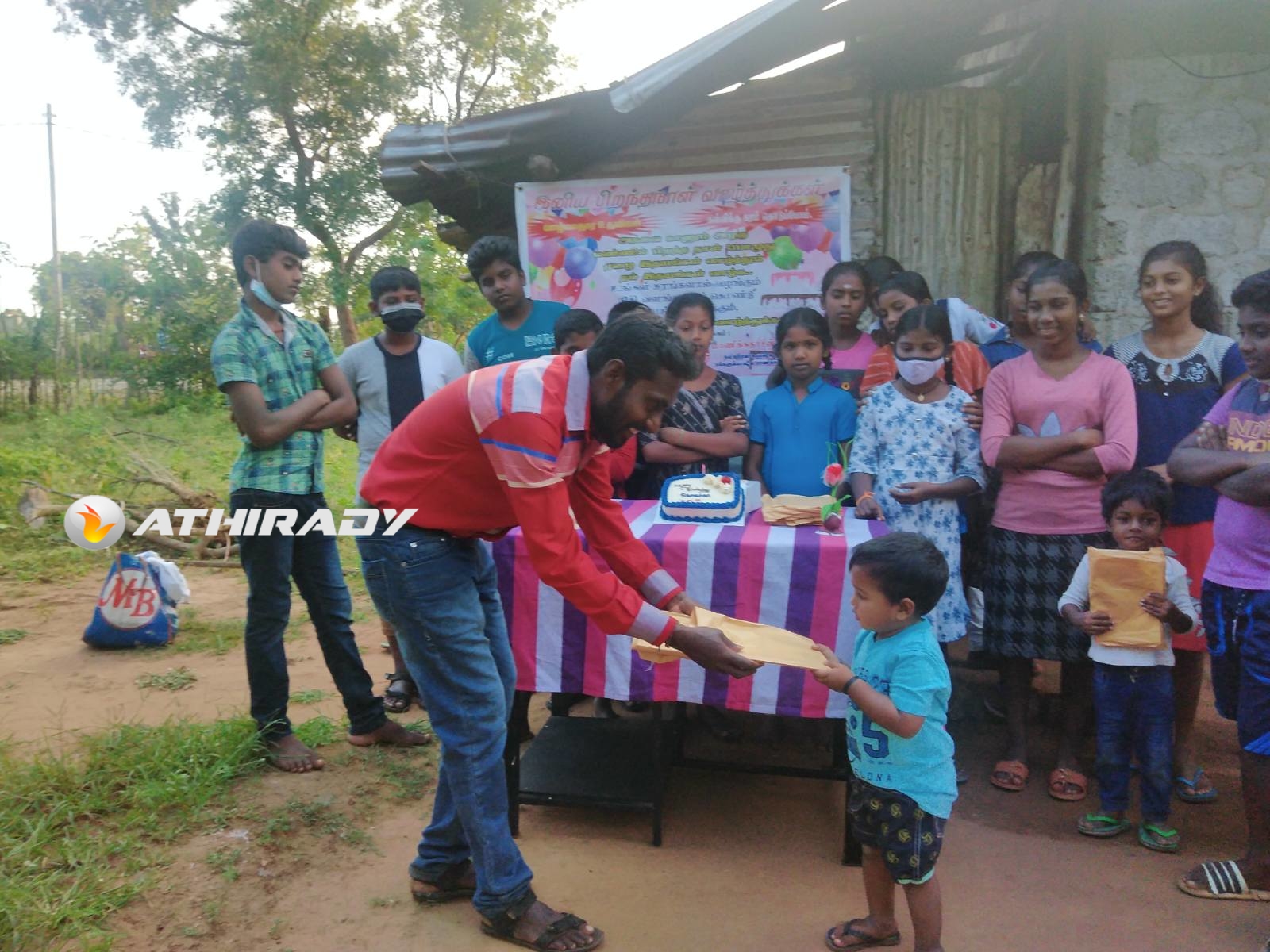 திரு. ரமணன் அவர்களது பிறந்த நாள் நிகழ்வுக்கு வருகை தந்த அனைவருக்கும் சிற்றுண்டி வழங்கப்பட்டதுடன் கலந்து கொண்ட மாணவ மாணவியர்களுக்கு மாணிக்கதாசன் நற்பணி மன்றத்தின் வவுனியா மாவட்ட இணைப்பாளர் திரு.பெருமாள் சஞ்சீவன் அவர்களால் கற்றல் உபகரணங்கள் வழங்கி வைக்கப்பட்டது.
