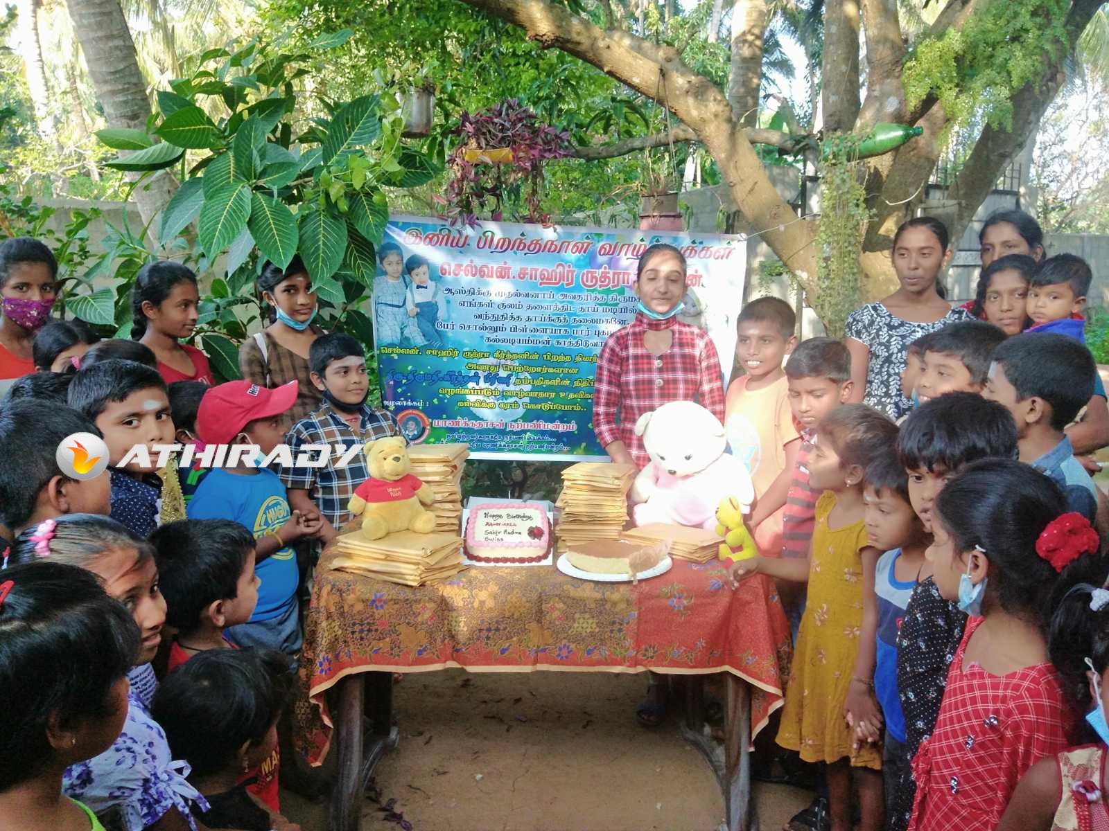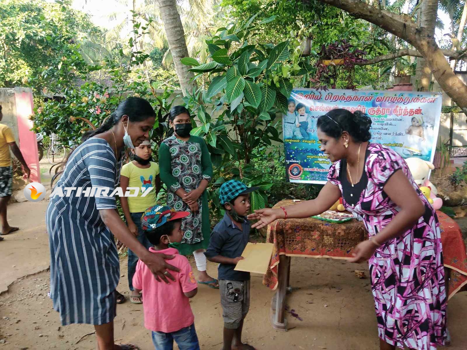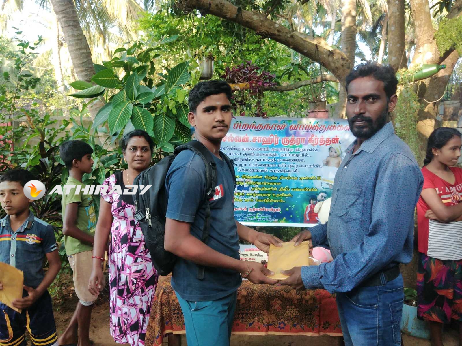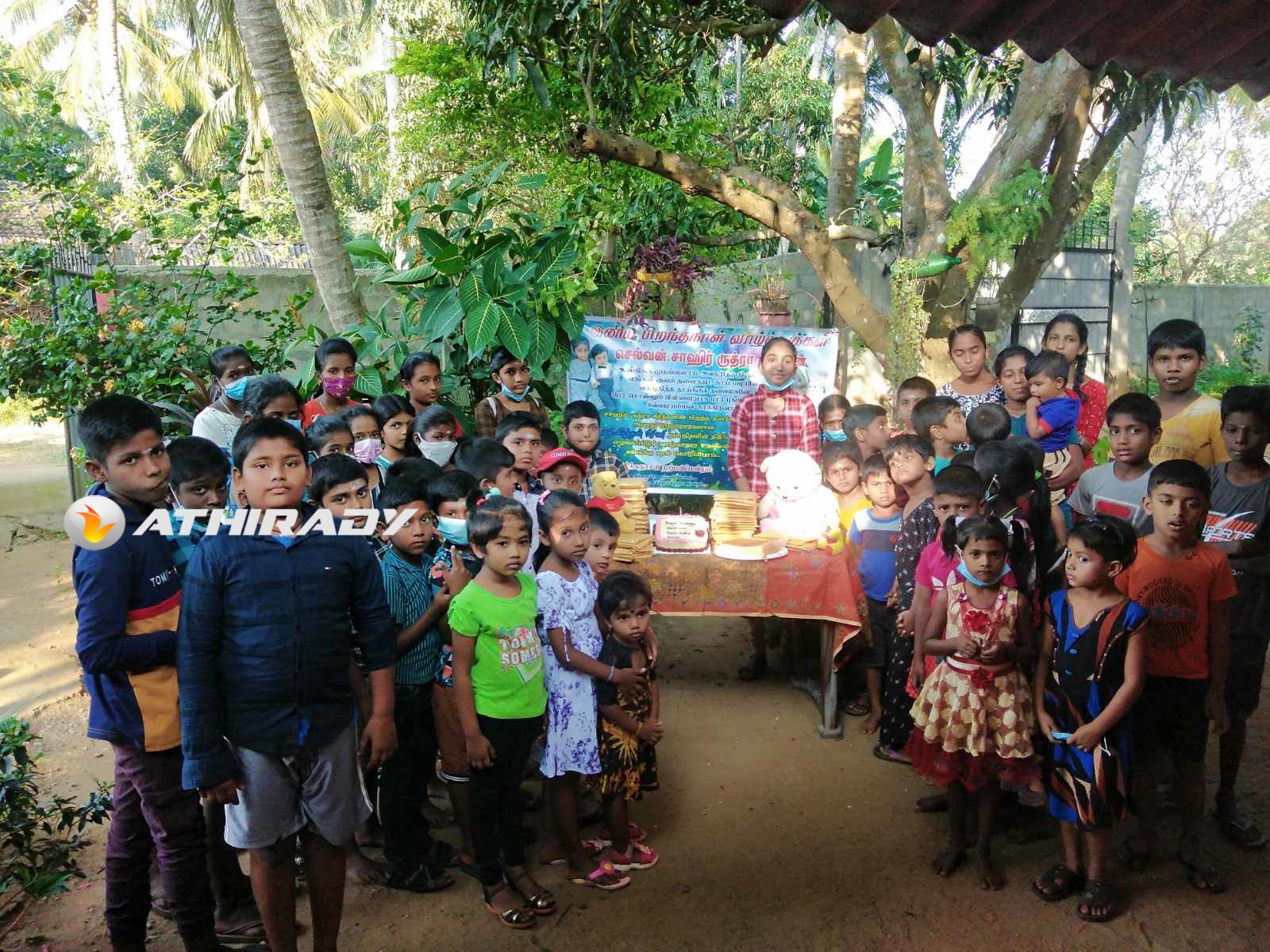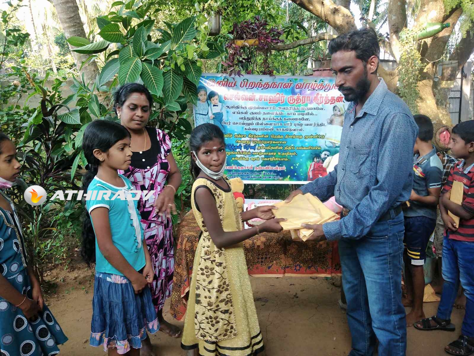 சுவிஸ் நாட்டில் வசிக்கும் திரு.திருமதி கீர்த்தன் பிரிணி தம்பதிகளின் செல்வப் புதல்வன் சாஹீர் ருத்ரா அவர்களது முதலாவது பிறந்த நாள் கொண்டாட்டம்.மாணிக்கதாசன் நற்பணி மன்றத்தின் ஓழுங்கமைப்பில் தாயக கிராம்மொன்றில் மிக விமர்சையாக கொண்டாடப்பட்டது. இந்நிகழ்வில் பொருந்தொகையான மாணவ மாணவிகள் தங்களின் பெற்றோர்களோடு வந்திருந்து பிறந்த நாளை சிறப்பித்தனர்.