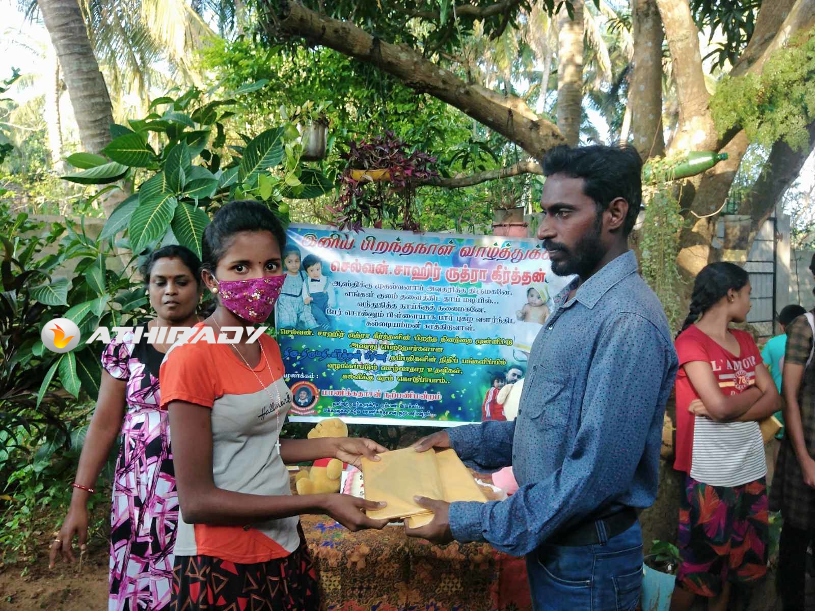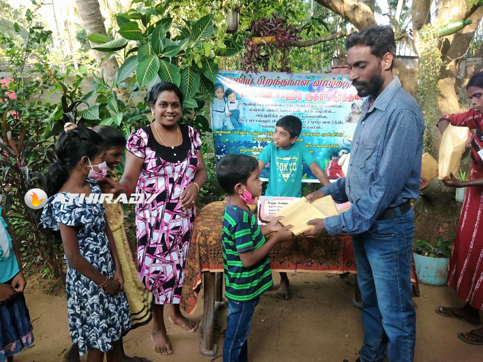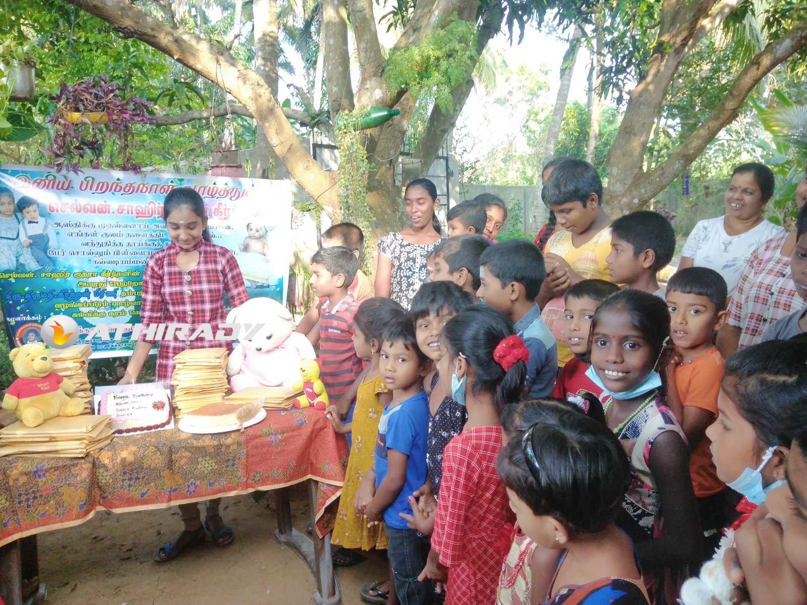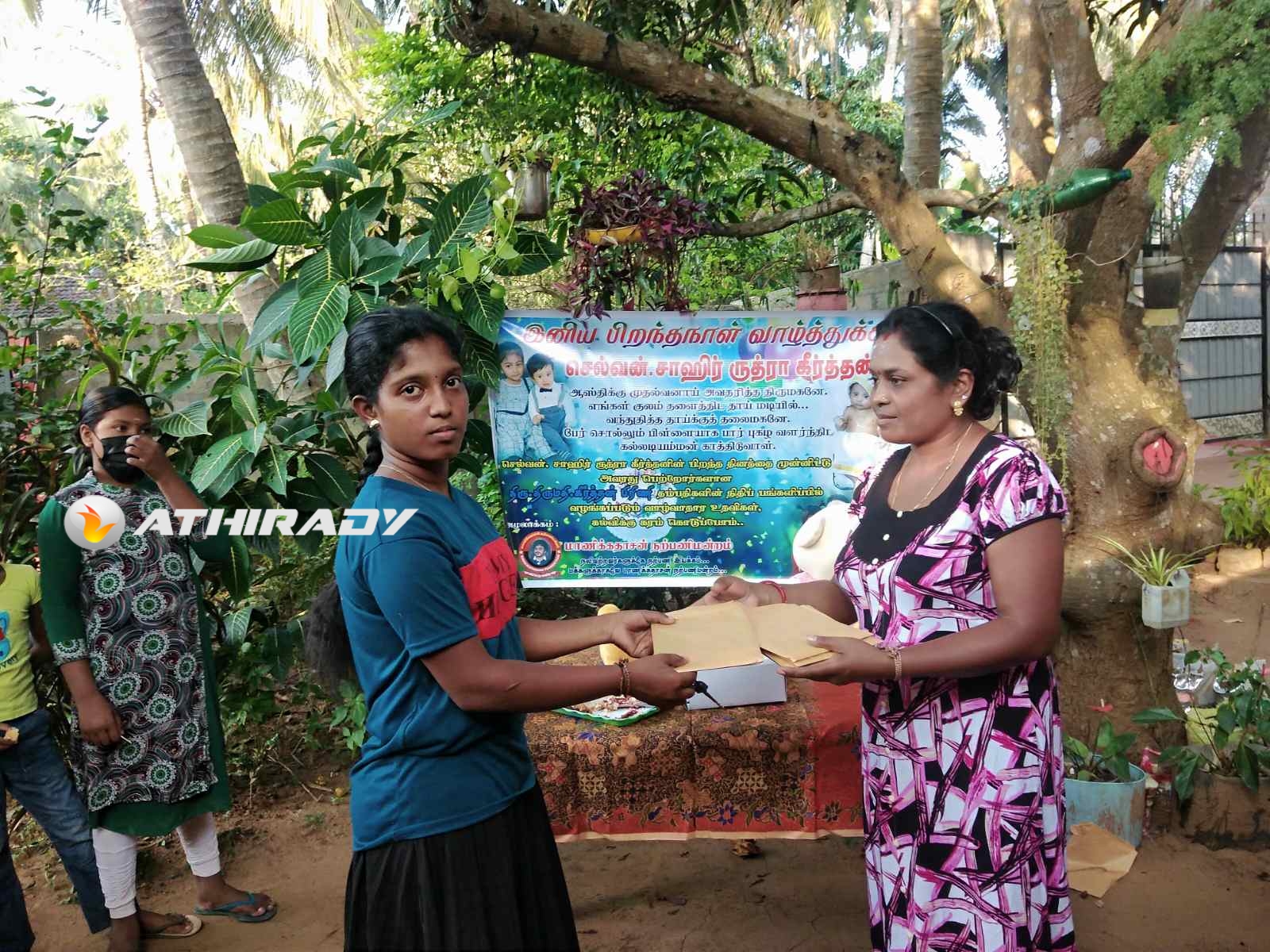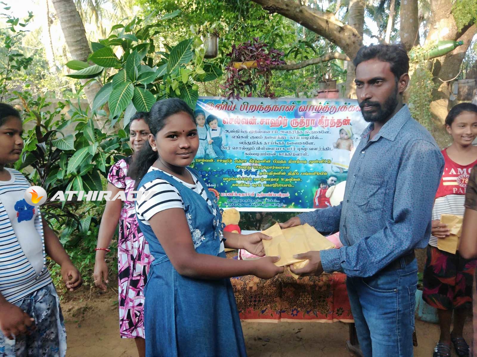 சுவிஸ் நாட்டில் வசிக்கும் திரு.திருமதி கீர்த்தன் பிரிணி தம்பதிகளின் செல்வப் புதல்வன் சாஹீர் ருத்ரா அவர்களது முதலாவது பிறந்த நாள் கொண்டாட்டம்.மாணிக்கதாசன் நற்பணி மன்றத்தின் ஓழுங்கமைப்பில் தாயக கிராம்மொன்றில் மிக விமர்சையாக கொண்டாடப்பட்டது. இந்நிகழ்வில் பொருந்தொகையான மாணவ மாணவிகள் தங்களின் பெற்றோர்களோடு வந்திருந்து பிறந்த நாளை சிறப்பித்தனர்.