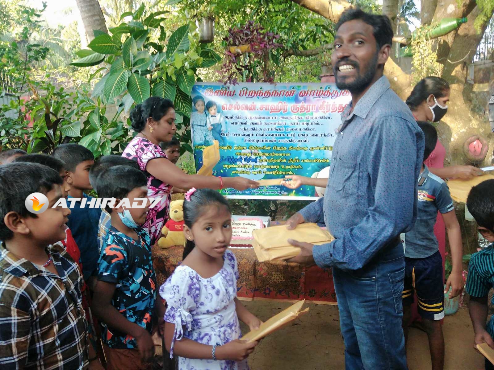 செல்வன் சாஹீர் அவர்களது பிறந்த நாளில் ஒன்றுகூடிய 100 க்கு மேற்பட்ட மாணவ மணவிகளுக்கு செல்வன்.சாஹீர் அவர்களின் பிறந்தநாளை முன்னிட்டு நிகழ்வில் கலந்த அனைத்து மாணவ மாணவிகளுக்கும் மாணிக்கதாசன் நற்பணி மன்றத்தின் ஏற்பாட்டில் கற்றல் உபகரணங்கள் வழங்கி வைக்கப்பட்டது.
