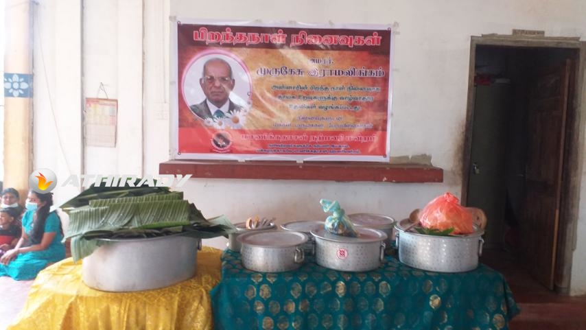 அமரர்.முருகேசு இராமலிங்கம் அவர்களின் எண்பத்தி எட்டாவது பிறந்ததினத்தை முன்னிட்டு அவரது மனைவி, மக்கள், மருமக்கள், பேரப்பிள்ளைகள் ஆகியோரின் நிதிப் பங்களிப்பில், “மாணிக்கதாசன் நற்பணி மன்றத்தின்” ஒழுங்கமைப்பில் இன்றுகாலை விசேட பூசையுடன் பாலாமைல்க்கல் குளுமாட்டுச்சந்தி காளி கோயிலில் மதிய உணவு விருந்தும் வழங்கி வைக்கப்பட்டது.