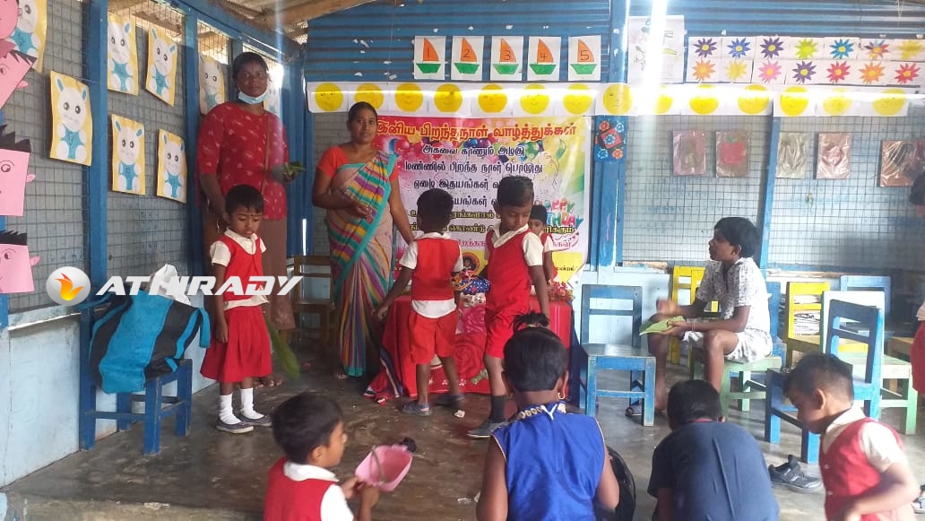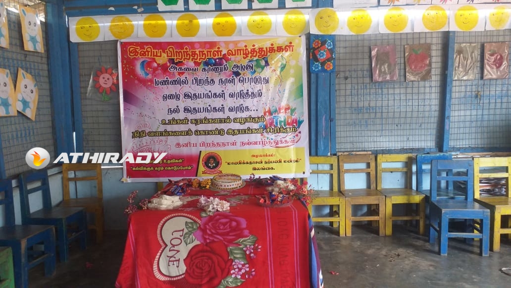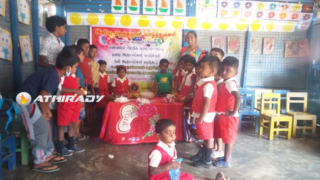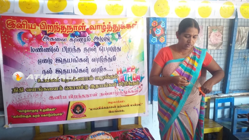 வவுனியா நெளுக்குளம் பிரதேசத்தில் உள்ள “அருளாலயம் முன்பள்ளி”யில் அதன் ஆசிரியைகளான திருமதி.அ.இலோஜி, திருமதி.செ.இந்திரகுமாரி, அப்பிரதேச சமுர்த்தி தலைவி திருமதி.எஸ்.பகவதி, மாதர் சங்க தலைவி திருமதி.எஸ்.சிந்து ஆகியோருடன் அப்பள்ளியின் மாணவ,மாணவிகளுடன் அவர்களது பெற்றோர்கள் எனப் பலரும் ஒன்றுகூடி இவரது பிறந்த நாளை மகிழ்ச்சியுடன் பிறந்தநாள் பாட்டுப் பாடி கேக்வெட்டி கொண்டாடினார்கள். பிறந்த நாள் கொண்டாட்டத்தில் கலந்து கொண்ட அனைவருக்கும் சிற்றுண்டி வழங்கப்பட்டது.