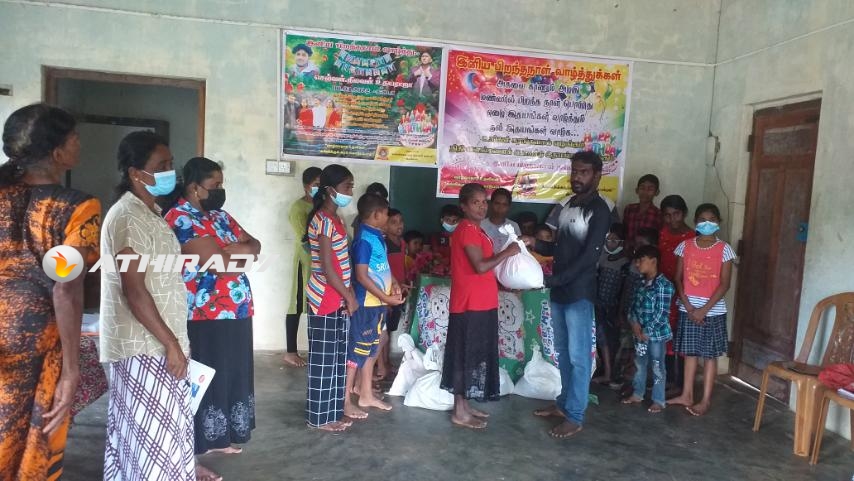 அத்துடன் அக்கிராமத்தில் பொருளாதார ரீதியில் மிகவும் பின்தங்கிய அன்றாட கூலித் தொழிலாளர்களின் குடும்பங்களைச் சேர்ந்தவர்களுக்கு செல்வன்.நிலவனின் பிறந்தநாளை முன்னிட்டு மாணிக்கதாசன் நற்பணி மன்றத்தின் வவுனியா மாவட்ட இணைப்பாளர் திரு. பெருமாள் சஞ்சீவன், முக்கியஸ்தர் திருமதி.ந.பவளராணி ஆகியோரின் சிறப்பான ஒழுங்கமைப்பில் உலருணவுப் பொதிகள் வழங்கி வைக்கப்பட்டது.
