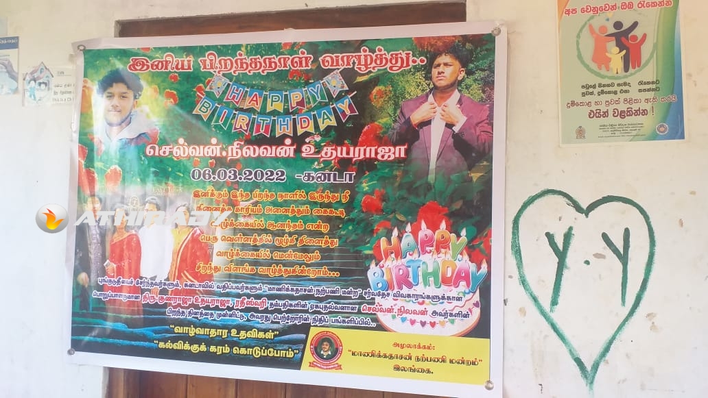இன்றைய நாளில் பிறந்த நாளைக் கொண்டாடும் செல்வன்.நிலவனுக்கு இனிய பிறந்தநாள் வாழ்த்துக்களை தாயக உறவுகளோடு இணைந்து “மாணிக்கதாசன் நறபணி மன்றம்” தெரிவித்துக் கொள்வதோடு, அவரது குடும்பத்தினரால் மேற்படி நிகழ்வுகளுக்கு வழங்கப்பட்ட நிதிப் பங்களிப்புக்கும், மதிப்புடன் கூடிய நன்றியினைத் தெரிவித்துக் கொள்கிறது “மாணிக்கதாசன் நற்பணி மன்றம்”..